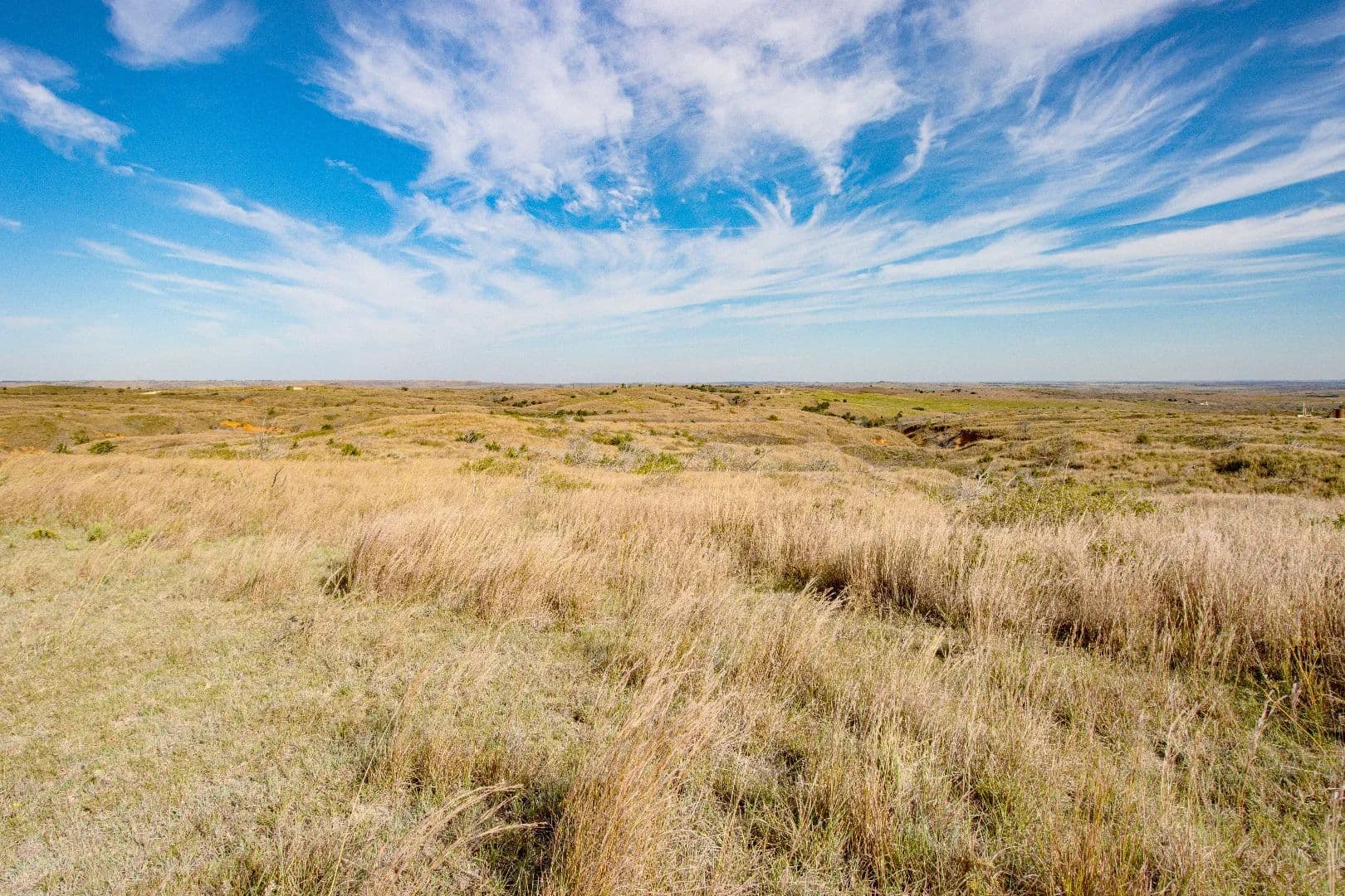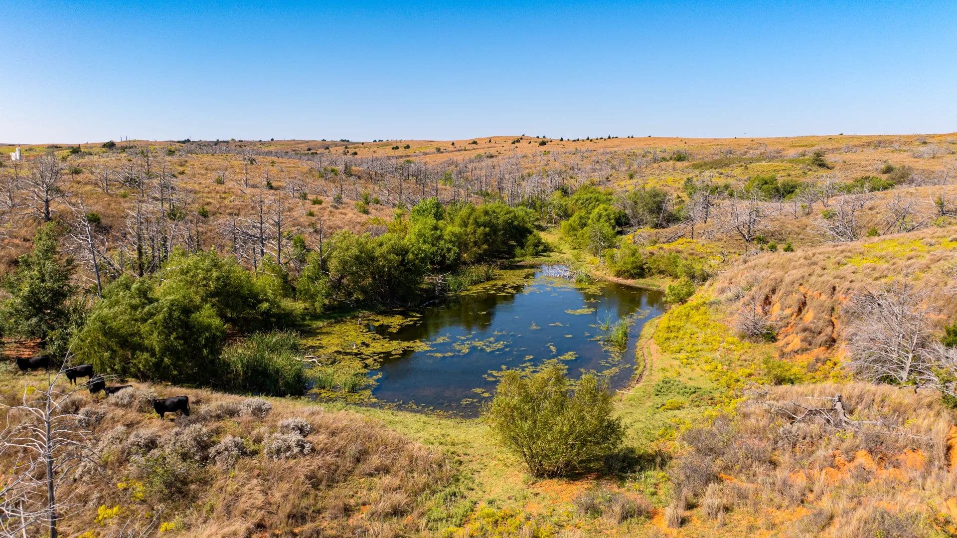 From the moment you enter the property, the diversity of terrain and habitat is immediately evident. The ranch features an exceptional blend of tall and short-grass prairie, improved Old World Bluestem fields, tillable wheat pasture, wooded draws, and large oak thickets. This balance creates an ecosystem that supports both commercial livestock production and high-quality wildlife habitat, making the ranch equally attractive to cattle operators and recreational buyers.