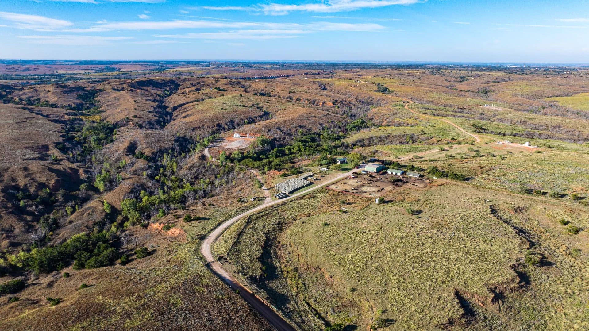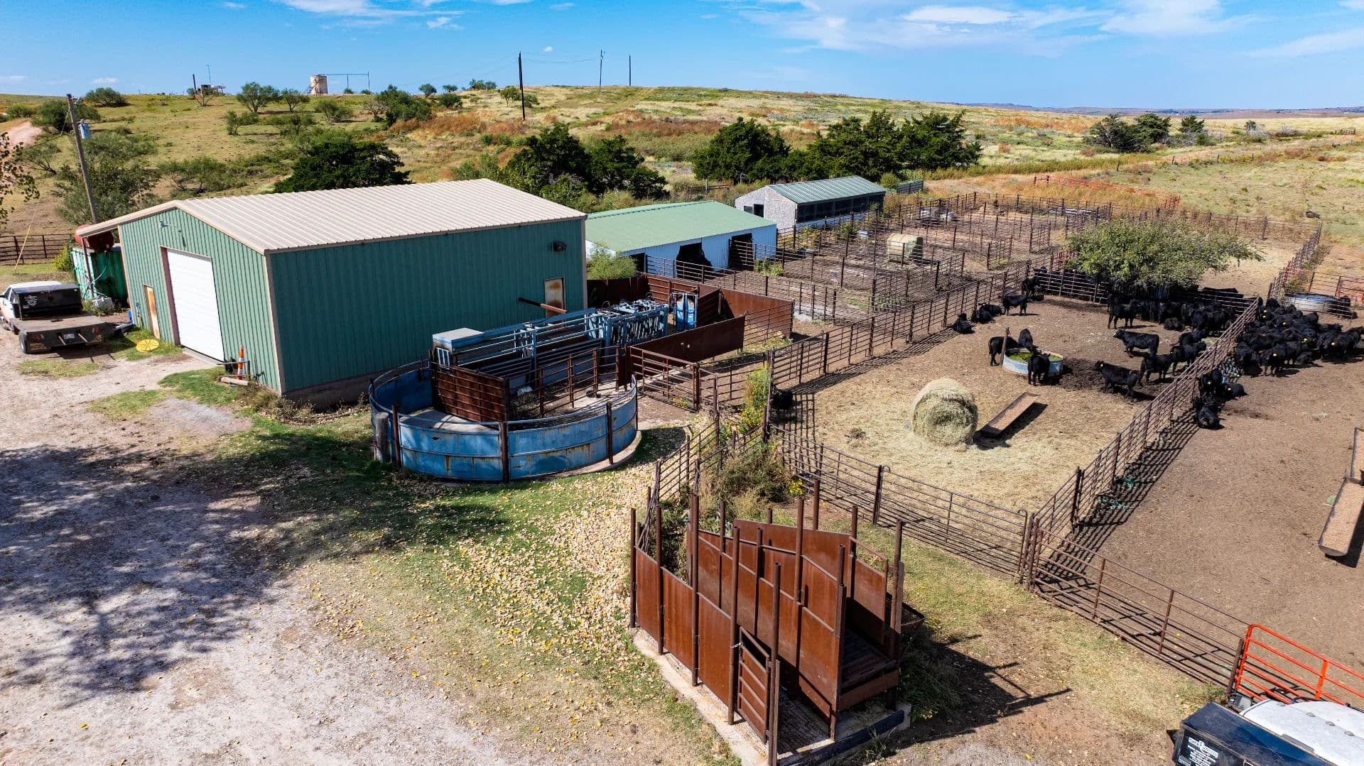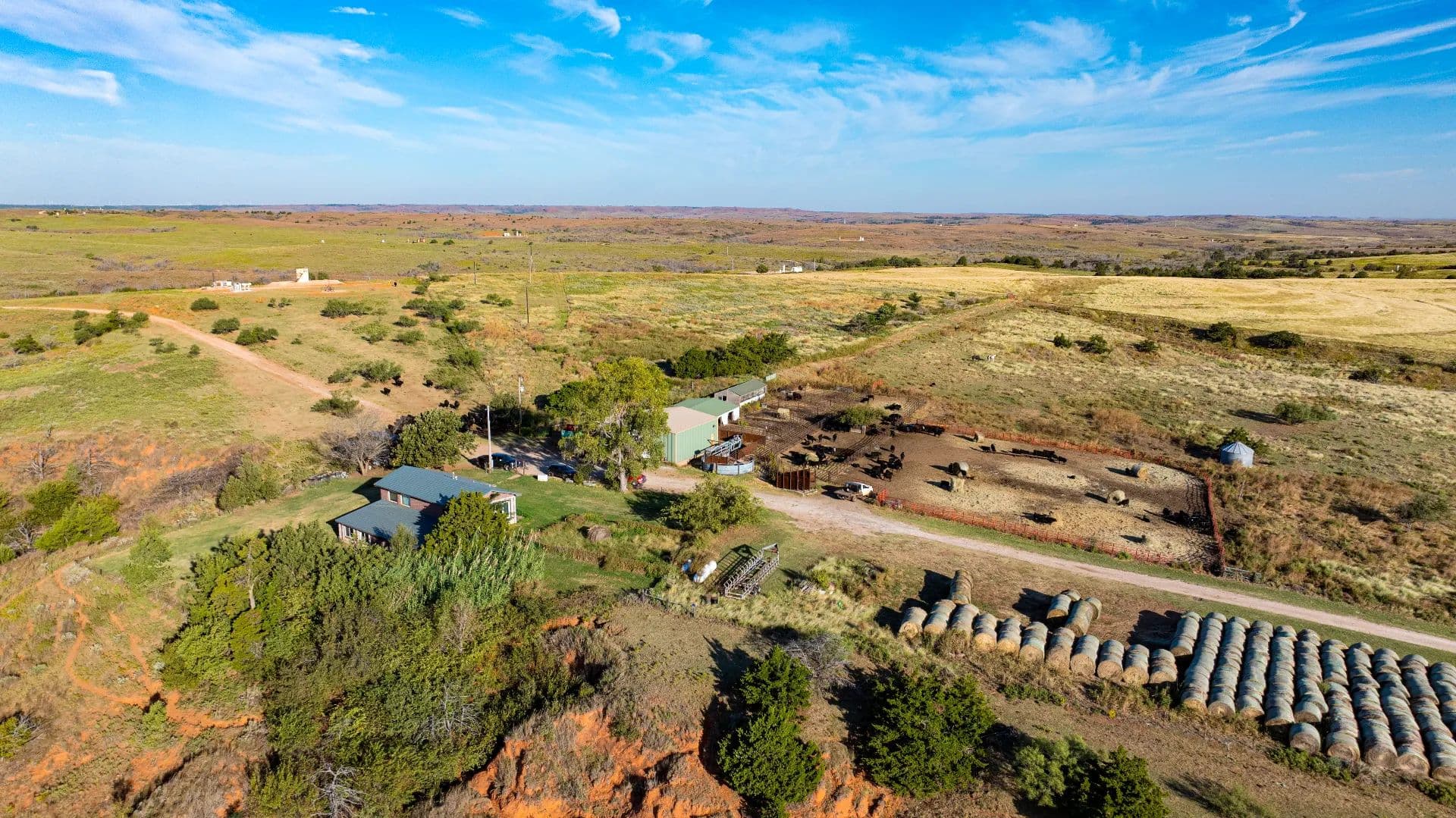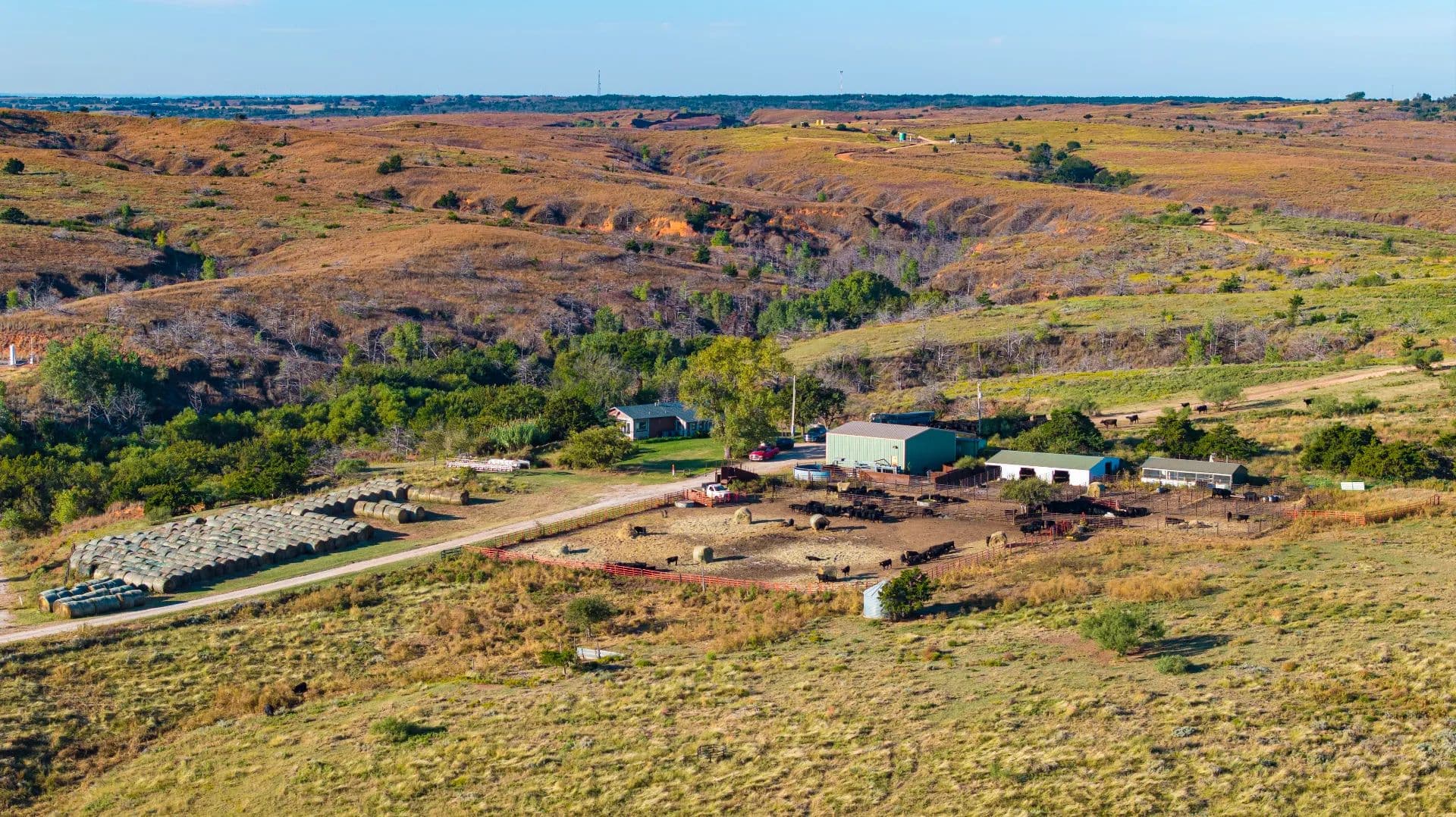 Infrastructure across the ranch is well thought out and highly functional. The property is cross-fenced into 11 pastures, each with established water sources, allowing for efficient grazing management and rotation. According to FSA records, approximately 287+/- acres are tillable, offering flexibility for on-ranch hay production, wheat pasture, or supplemental forage. An extensive network of approximately 8 miles of interior ranch roads and trails allows for easy navigation throughout the ranch by pickup and feed truck.