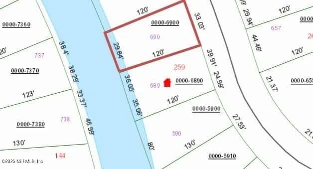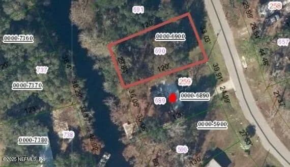 Vacant canal front lot, leading into the St. Johns River. Mostly cleared, paved road frontage, zoned R-2. County water available. Survey on file.