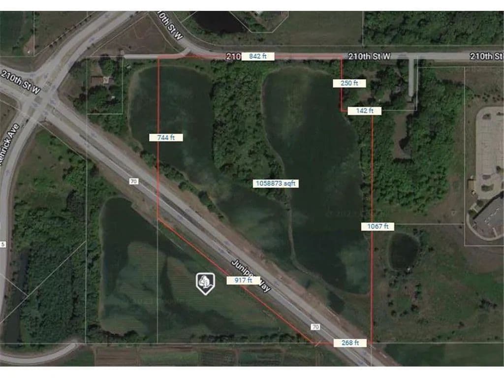 RARE 20 buildable prime acres for OP Zoning Commercial Development Hotel, Office Park, Restaurant, See City Planners for details and guidance. City Services-Water, Sewer, Electric. Frontage on New 4 lane Co. Rd 70 & upgraded 210th St. ACCESS Area businesses include: Amazon 700,000 SF Distribution Center, FedEx Distribution Ctr, Schneiderman's Warehouse & Distribution Center, Airlake Business Park/airport, Walmart, Theaters, Numerous Restaurants and Hotels, Holiday & Speedway Convenience Stores. Convenient location just 28 Minutes to Minneapolis or St Paul, and 21 minutes to MSP International Airport. Additional land available ask for details.