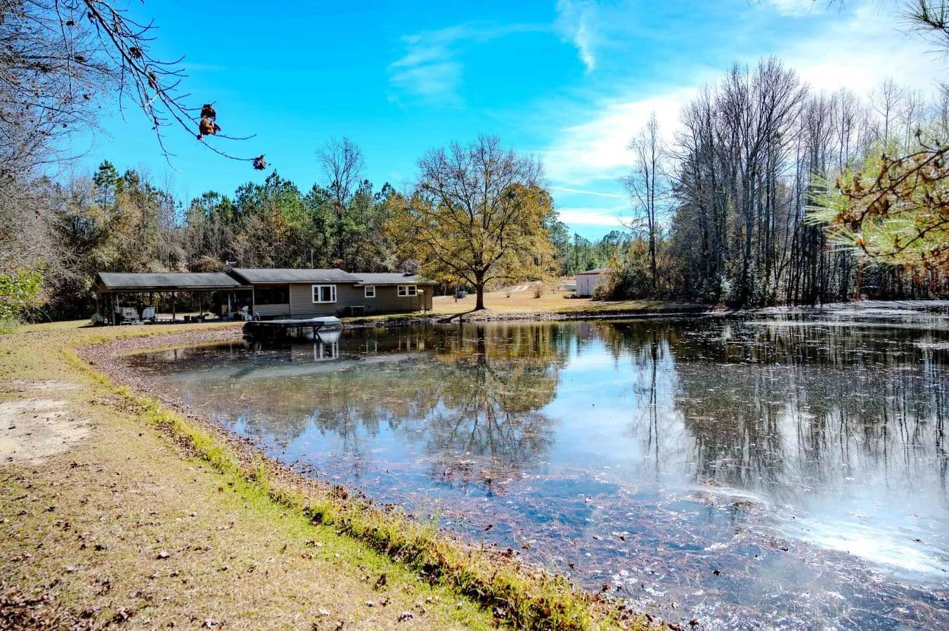 Discover 67.97 acres of privacy and natural beauty in the peaceful community of Olivia. Centrally located just off Highway 87 between Spring Lake and Sanford, this property offers convenience while maintaining a quiet rural setting. Tucked more than 1,800 feet off the highway, the land features a mix of mature timber, a private pond, and a gently sloping landscape that falls from approximately 400 feet at the road to around 330 feet at the rear of the tract. The main home sits adjacent to the pond and offers two bedrooms, electricity in place, and an existing well. Two additional structures are on site but are in disrepair and contribute no value. Several areas across the property show indications of suitable soils, though no formal testing has been completed. An abundance of wildlife sign can be found throughout the acreage, including deer, turkey, and small game, making this an excellent opportunity for recreation, long-term investment, or your own country retreat. In addition to the pond, a seasonal creek winds across the southwestern corner of the land, adding to the property's natural character. Whether you are seeking a homestead site, a hunting getaway, or a private escape within Harnett County, this tract offers exceptional potential in a desirable and accessible location. Showings are by appointment only and require 24 hours' notice. Do not enter the property without an appointment.