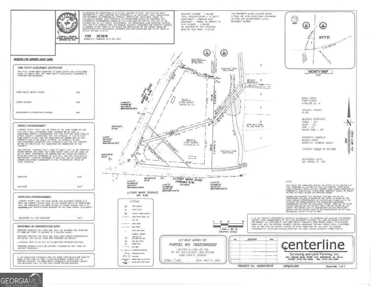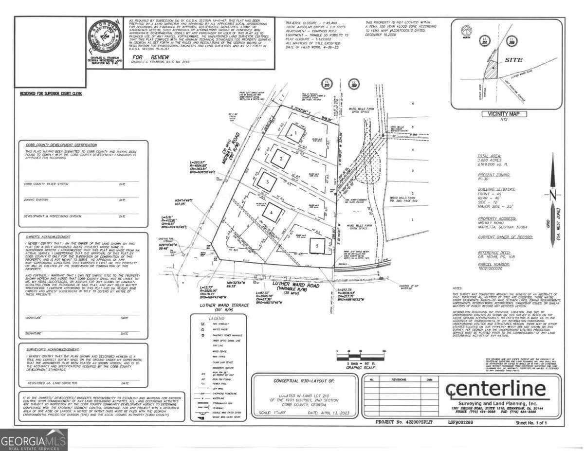 Our Seller Is Offering For A Limited Time 3.88 Acres Of Serene Residential Land in The Hillgrove High School District. This Property Is Close To Shopping, Schools & All Your Needs. Build That Dream Home Or A Conclave Of New Homes in The Hotest Area Of West Cobb! This Gently Rolling Tract Has 527 Feet Of Road Frontage On Midway Road & 390 Feet On Luther Ward Road. Property Is Zoned R-30, Has Sewer On-Site & Can Potentially Yeild Up To 5 Lots Without Re-Zoning. New Construction in The Area Is One Million Dollars Plus. Survey, Conceptual Plans, Aerial Map, Topo Map & Tax Plat Available.