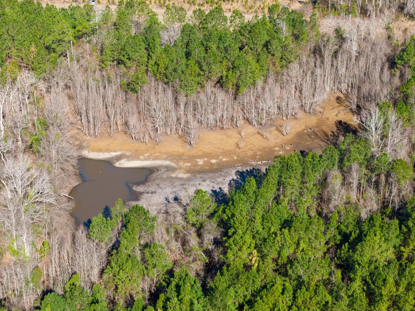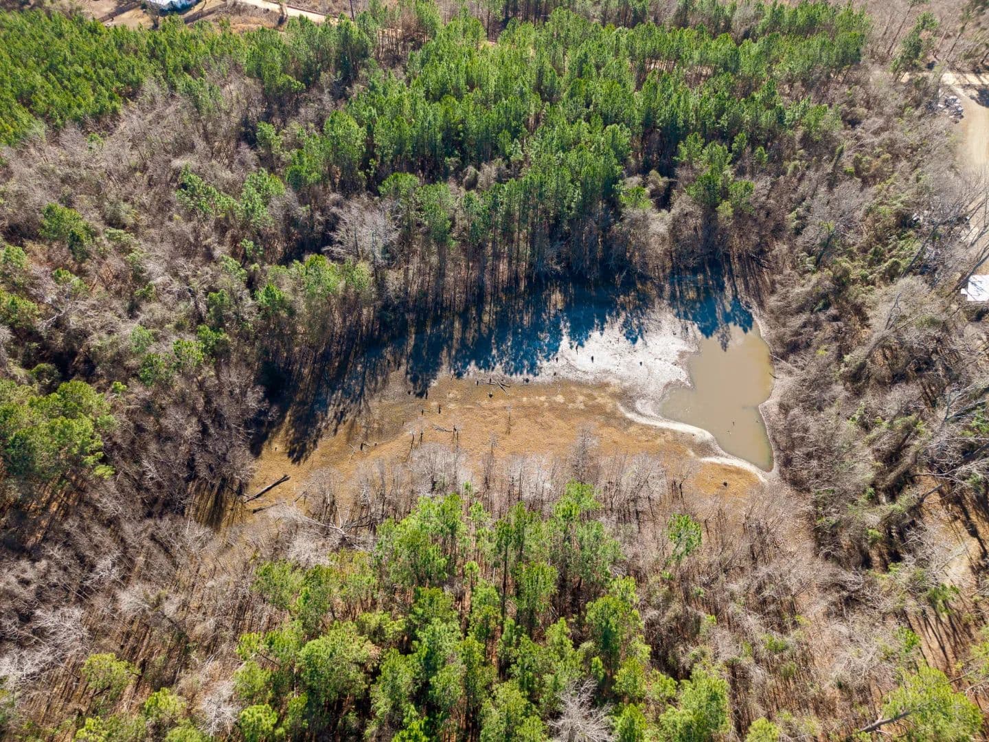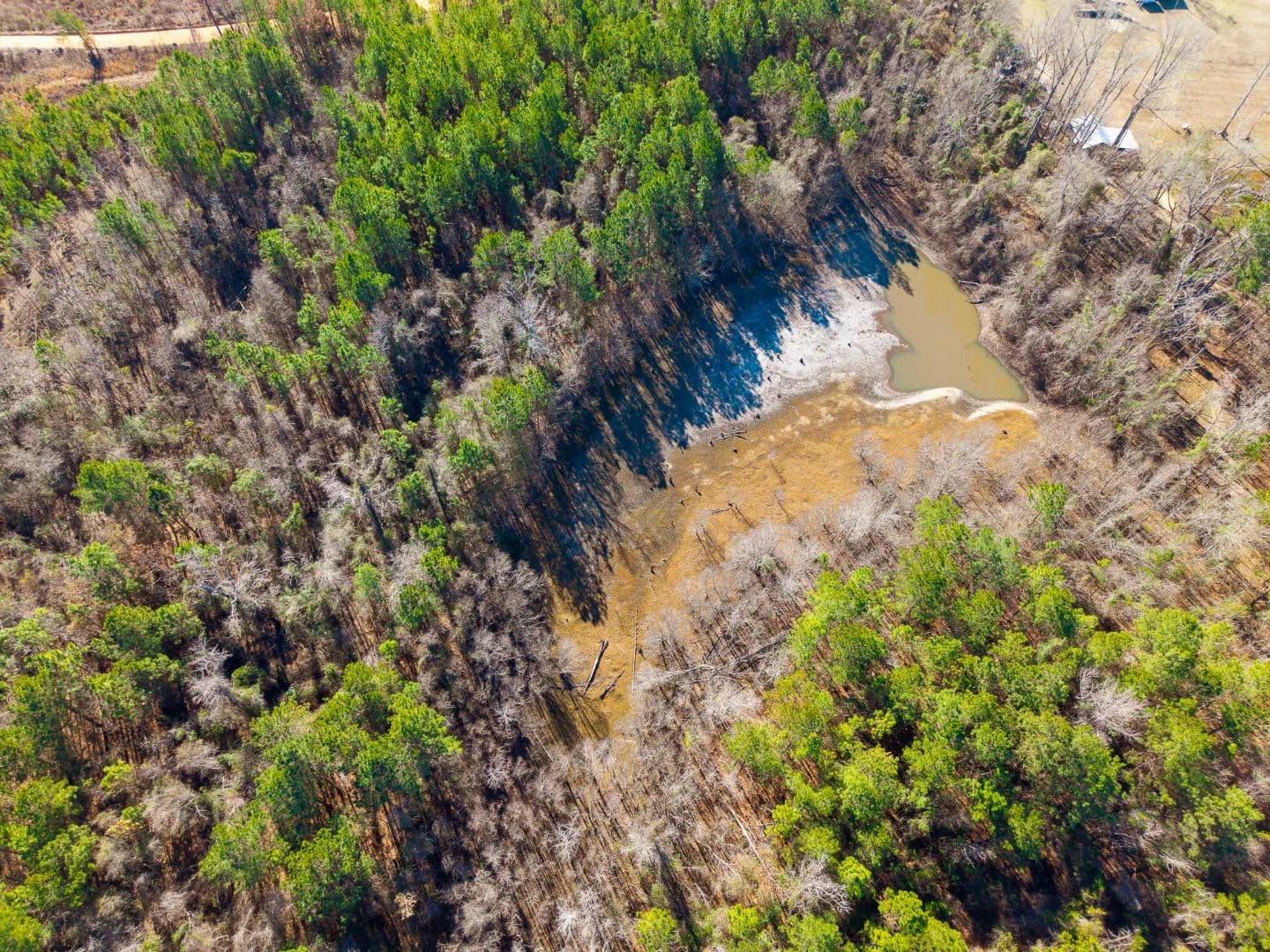 The 1-acre pond has historically held water well, though it may fluctuate during extended droughts. Overhead utilities are available along Henry Moxley Road, a paved county road, allowing for easy access to power for a future home or cabin.