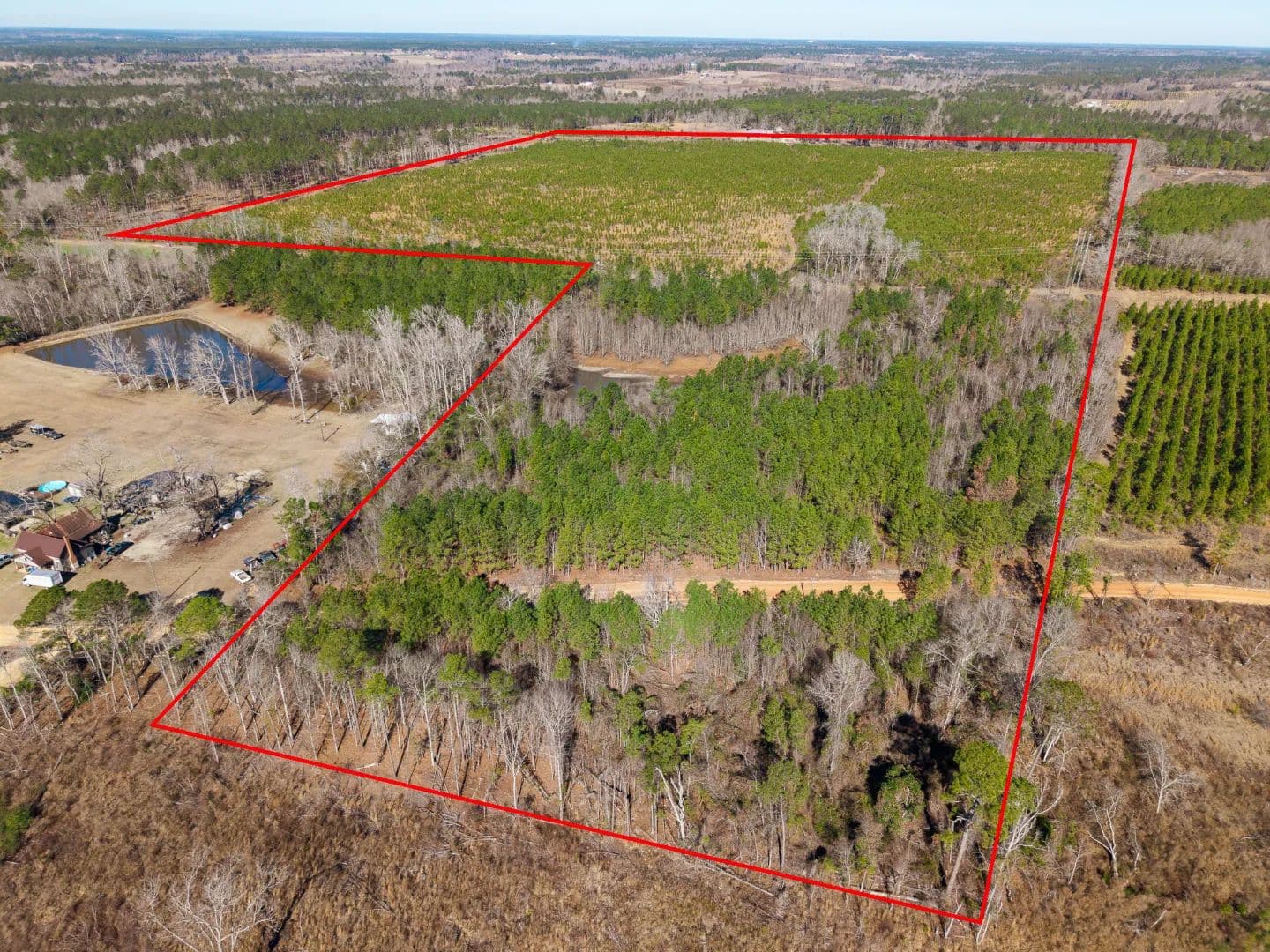 Nearly 70 acres consist of well-stocked, 4-year-old planted pine growing on well-drained upland Tift soils, making this an outstanding candidate for a timber investment, future conversion to pasture or farmland, or a homesite or recreational retreat. The remaining acreage includes approximately 12 acres of mixed pine and hardwood, a 1-acre pond, and 2 acres beneath a transmission line, adding diversity and usability to the tract.