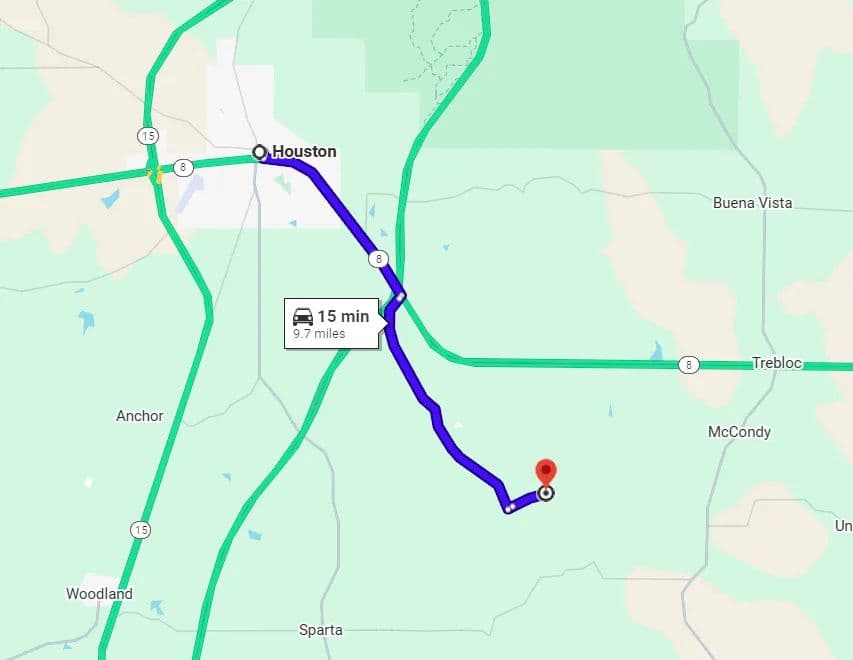Located in Clay County on the Chickasaw County line, the Clay 38.5 sits approximately 9.7 miles southeast of Houston, 12.8± miles northeast of Woodland, 37.5± miles northwest of Starkville, and 45.3± miles southwest of Tupelo, offering a convenient North Mississippi location with access to nearby towns and amenities.