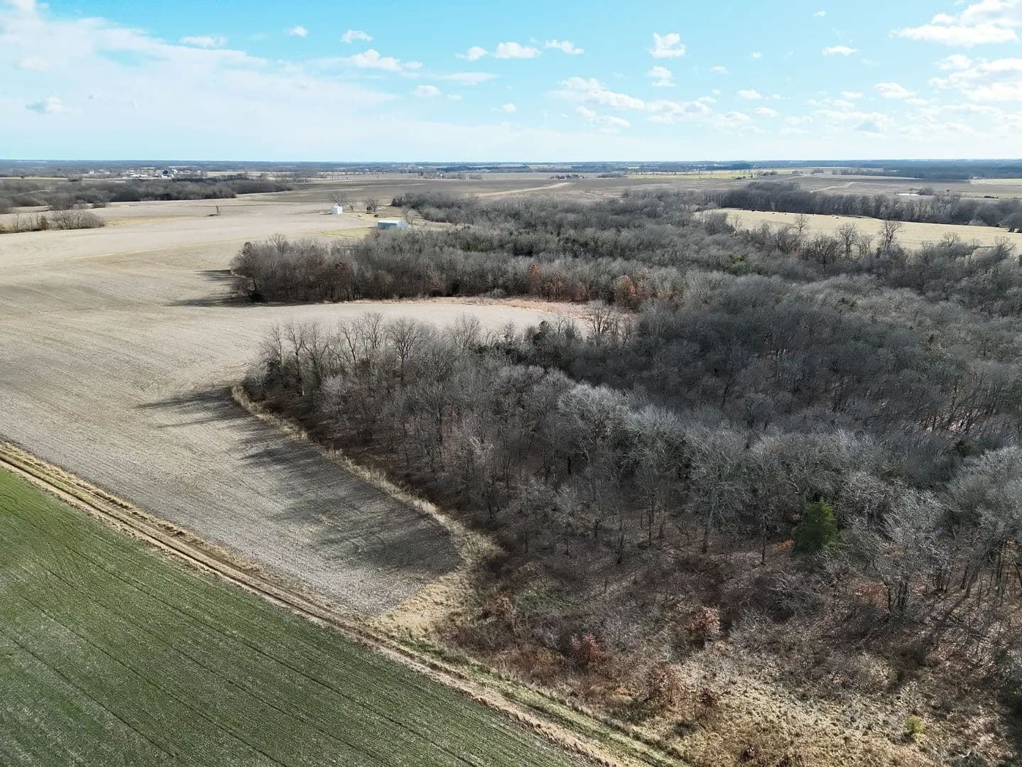 Nestled near Pilot Grove, the property is close to local amenities while offering private rural living. With 10+/- acres of land currently in row crop production offering annual income, the remaining land consists of timber with brushy edges, creating good habitat for wildlife. Perfect tract for hunting or outdoor recreation. The property provides multiple potential build sites for a single home retreat or multiple residences. Electric access nearby. Additional unrestricted land is available to expand your land holding.