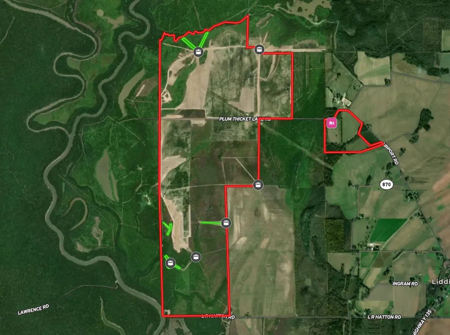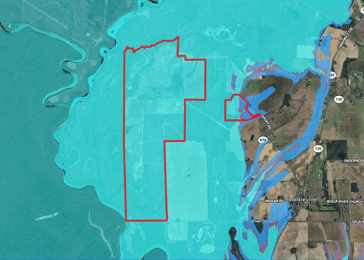 This tract also shines for deer hunting, featuring several established food plots and a healthy population of mature deer. On the southwest corner, a concrete boat ramp provides direct access to the Boeuf River and over 50,000 contiguous acres of public land.