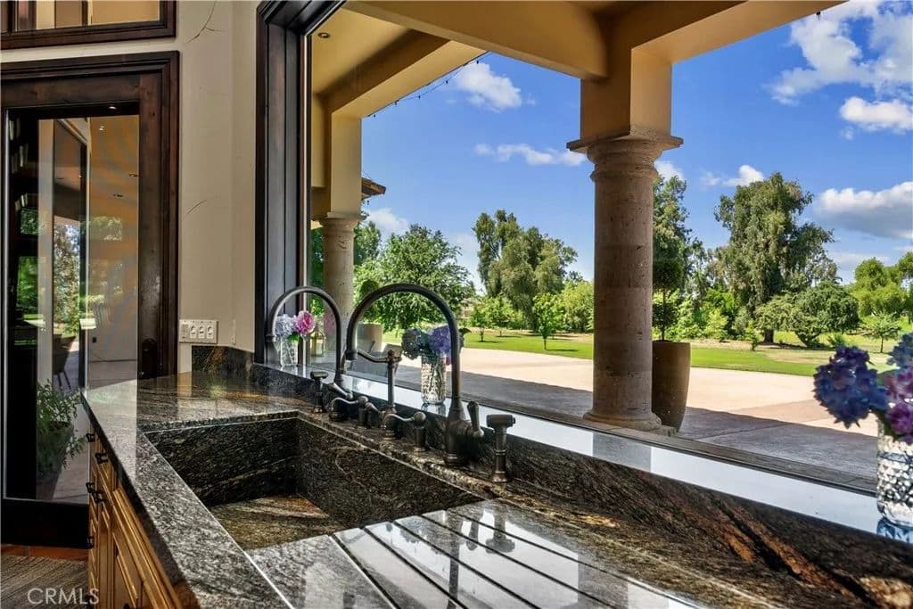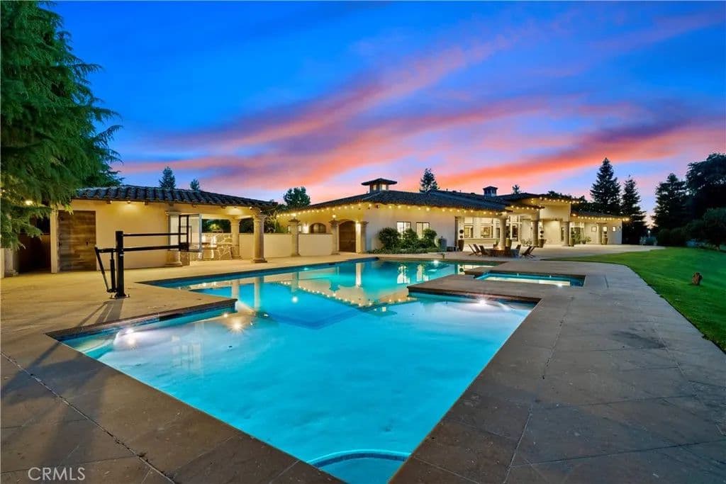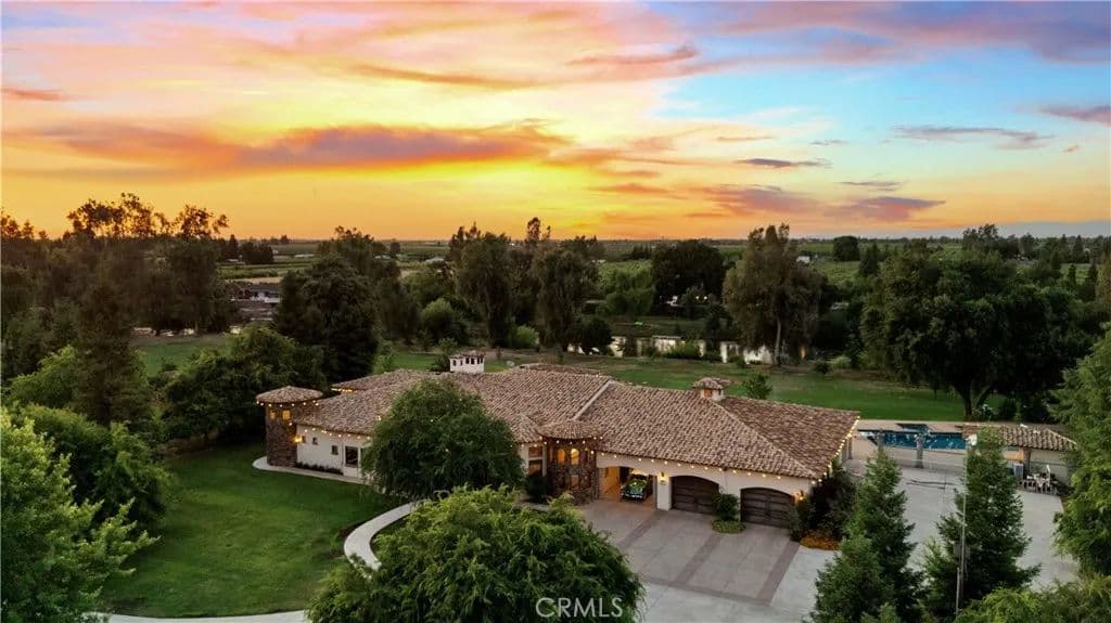 The unparalleled outdoors of this paradise property feature an oversized pool and spa, with a gorgeous spacious patio guarded by stone crafted pillars. Including a pool house with built in barbecue grills, and a recreational area. Recline and relax next to the in-ground fire pit and toon in with the sound of the river and nature as you overlook the massive backyard that turns into a golf course. Bring your horses and other livestock to their new dwelling place, which is surrounded and fenced off by mature trees, providing an abundance of privacy. Smell the glory of the mandarin expanse, which will provide you additional income and the bounty of your own private orchard. Located in the heart of the Central Valley, only a few hours away from both the mountains and the ocean! Experience the ultimate luxury living at this breathtaking estate, where dreams become reality.