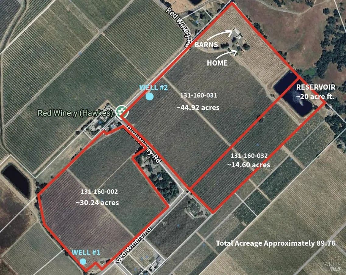 Nestled in the heart of the world renowned Alexander Valley AVA, this beautiful approximately 89.7 acre property offers exceptional potential in a premier wine growing region. Approximately 71 acres are currently fallow, providing a blank canvas for future vineyard development or agricultural use. The property is enrolled in the Williamson Act and consists of one legal description encompassing three APNs and three physical addresses. A reservoir and a high producing well support the property's agricultural capabilities, and an active VESCO permit granted in fall 2023 provides a valuable head start for future planting. Existing improvements include a 2 bedroom home and barns, offering opportunity for renovation or redevelopment.This is your chance to shape a significant landholding in one of Sonoma County's most sought after AVAs.