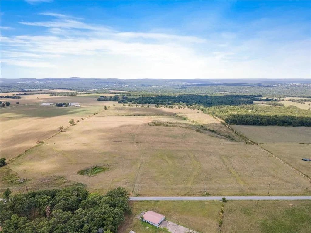 80 acres on paved road with a beautiful setting of the Ozark Mountains in the distance! Perfect for livestock or agricultural use. Would make an amazing homesite! Brand new well on property - 1400-1600 ft deep; produces 100 gal/minute. Seller had plans for a large, beautiful estate home but location changed so he is selling. Electric and public water at the street. (Buyer to satisfy utility locations for themselves). Additional 115 acres available. See also MLS #1294167