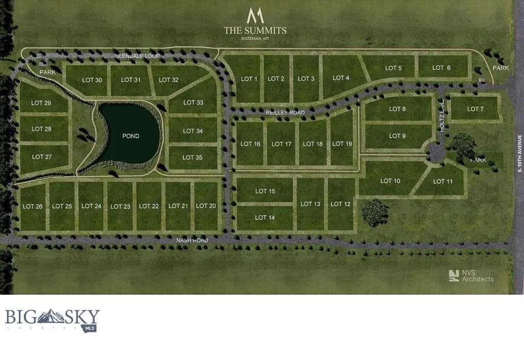 Welcome to The Summits, the premier subdivision located in the prime Southside of Bozeman near the breathtaking Hyalite Canyon. We are excited to introduce you to this exceptional community and provide you with all the information you need to reserve your lot and build your dream home in this extraordinary neighborhood. The Summits spans 50 acres of beautifully designed landscape, featuring lots over an acre in size, offering ample space and privacy. This premier location provides stunning views of the Bridger Mountains and the surrounding valley, creating a serene and picturesque setting. Located just ten minutes from Main Street Bozeman, Montana State University, and Bozeman Health, The Summits offers convenient access to all the amenities and attractions of the area. One of the highlights of The Summits is the community pond, a tranquil feature that enhances the neighborhood's charm and provides a peaceful retreat for residents. The community includes 30% open space, preserving the natural beauty of the area and supporting local wildlife, riparian habitats, and native plant species. An extensive network of interconnected trails winds through. Whether you're casting a line in pristine waters, carving fresh powder, tackling challenging bike trails, or hiking scenic routes, you'll find endless opportunities for outdoor adventure right at your doorstep. After your adventures, come home to The Summits, where you can relax and enjoy the peace and tranquility of your surroundings. The Summits has been thoughtfully designed to harmonize with the natural landscape, ensuring a seamless integration of the community into its stunning surroundings. This careful planning creates a unique living experience that combines luxury, privacy, and a deep connection to nature.