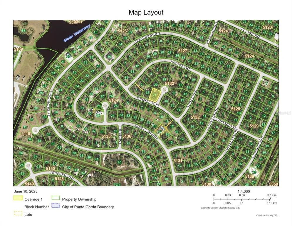 Nice oversized corner lot on Cul-de-sac. Charlotte County allows for address to be on Araby Court or Harland Road depending on how your new dream home is placed on the lot. Quick access to Publix, shopping, schools, beaches and restaurants. Quiet neighborhood with newer homes; be the first to build on this Cul-de-sac.