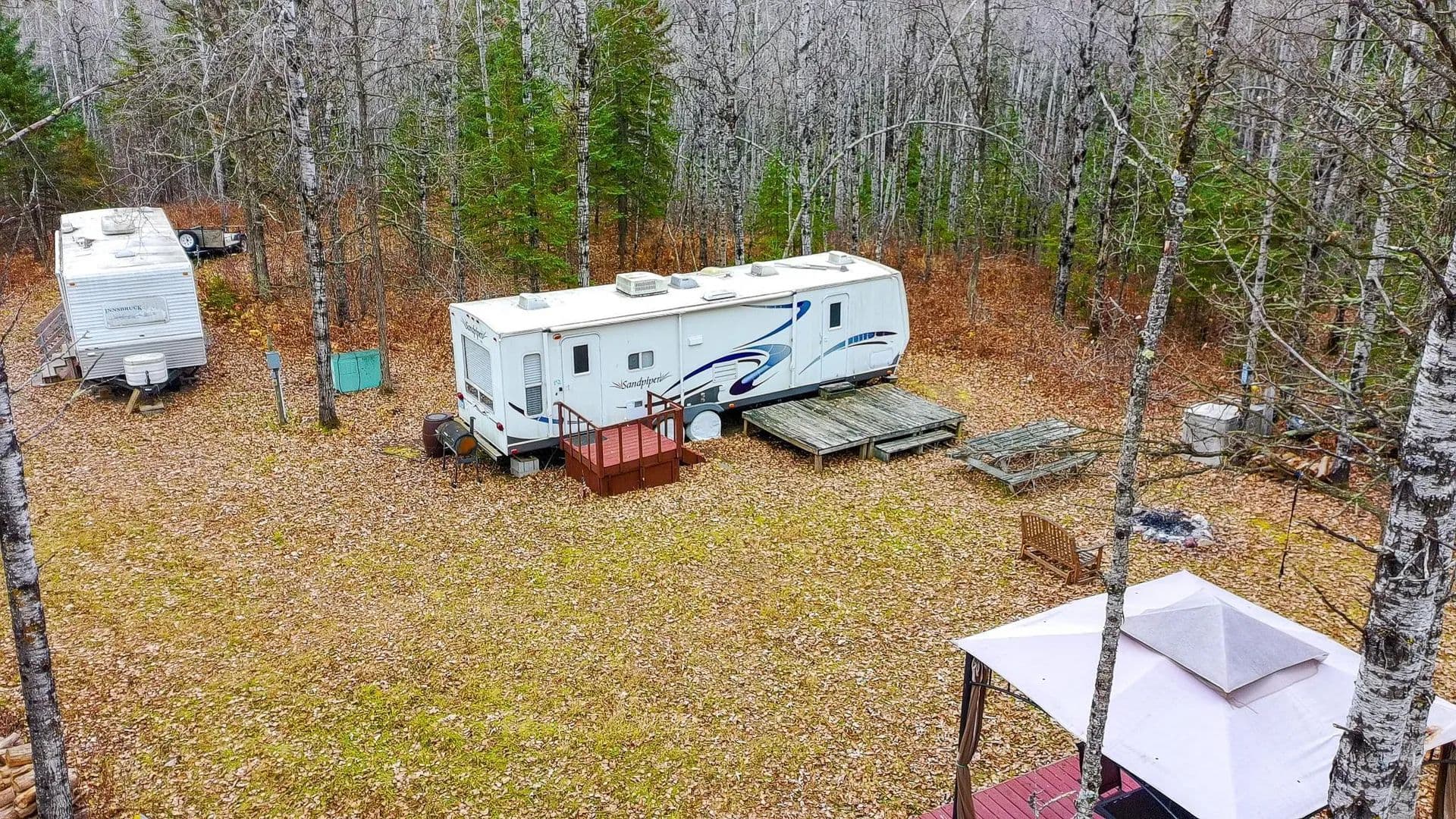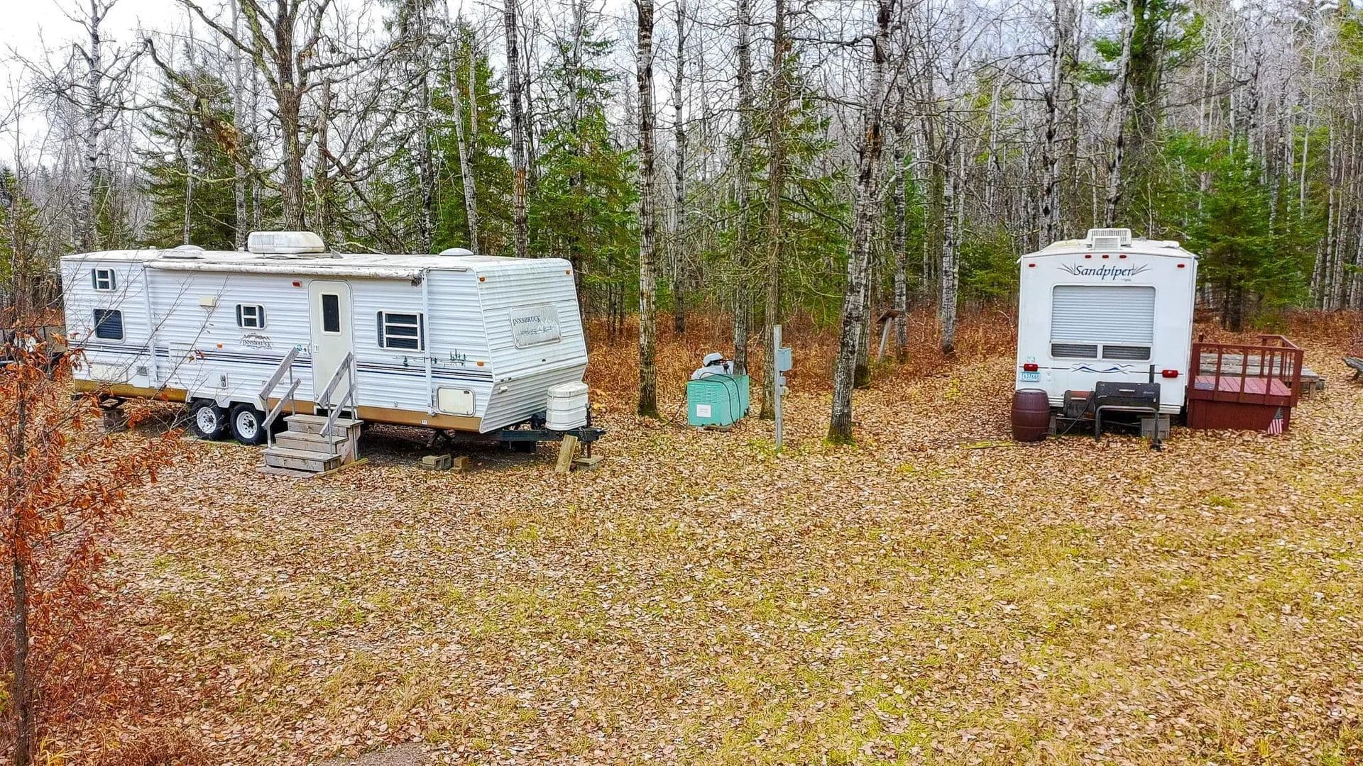 Escape to your own 20-acre Northwoods retreat with the Nemadji River flowing through the property, offering approximately 500 feet of frontage on both sides of the river! Enjoy rolling hills, a scenic river valley, and three ready-to-use deer stands with wide sightlines and hunting opportunities. Walk the trails, listen to the flowing river, and soak in the peace of nature. The property includes a 2004 (32x8) Innsbruck camper trailer and a 2006 (32x8) Sandpiper camper trailer, both in great condition, a 20x12 shed, and a 12x12 deck, all set up for seasonal living or an excellent base camp. Tucked away yet convenient-25 minutes to Gordy's Hi-Hat, 20 minutes to Duluth, and under 2 hours from the Twin Cities. Perfect for a hunting base, weekend getaway, or future cabin site surrounded by peace, privacy, and natural beauty. Don't delay call today!