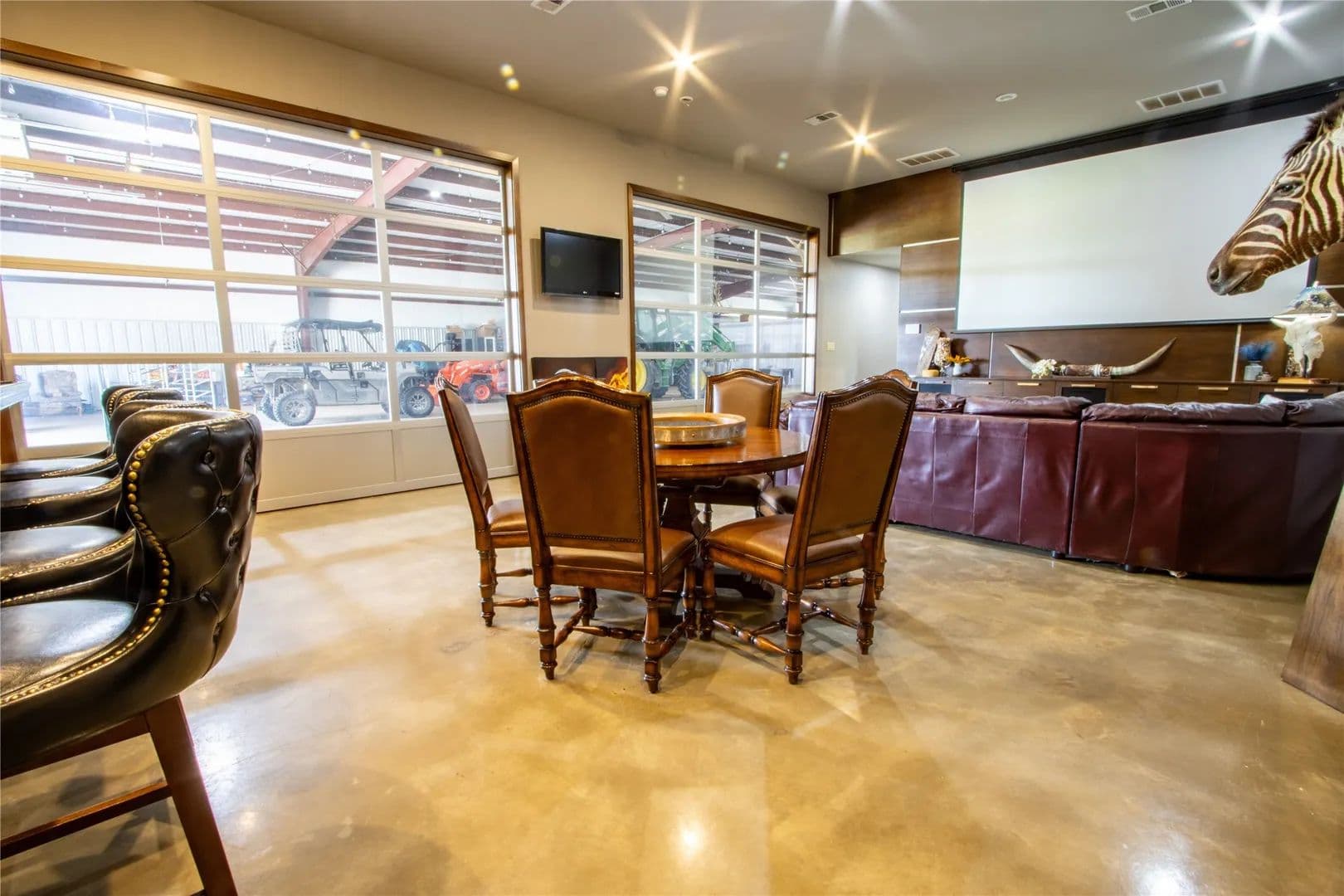 Located on the border of Justin and Ponder, Texas, discover a ranch estate with lush woods and sprawling pastures perfect for cattle, horses, or hunting. The property features a 12,000 square foot barndominium with 3,738 sqft of living quarters including 3 br's and 3 ba's with a steam shower. If you love entertaining, you won't find a better area than the media room with a full bar that opens up to the shop. Great for hosting parties! Blending rustic charm with modern comfort this barndo is set up perfectly. Situated along Denton Creek, the ranch offers access to a private lake, ideal for relaxation and recreation. For outdoor enthusiasts, the ranch provides prime hunting grounds with deer, turkey, and hogs. Property also features a high low skeet range. Ranch is cross fenced with working pens for cattle. 25x50 lean to with attached chicken coop. Less than 45 minutes to DFW Airport and downtown Fort Worth. Come enjoy country living at it's finest!