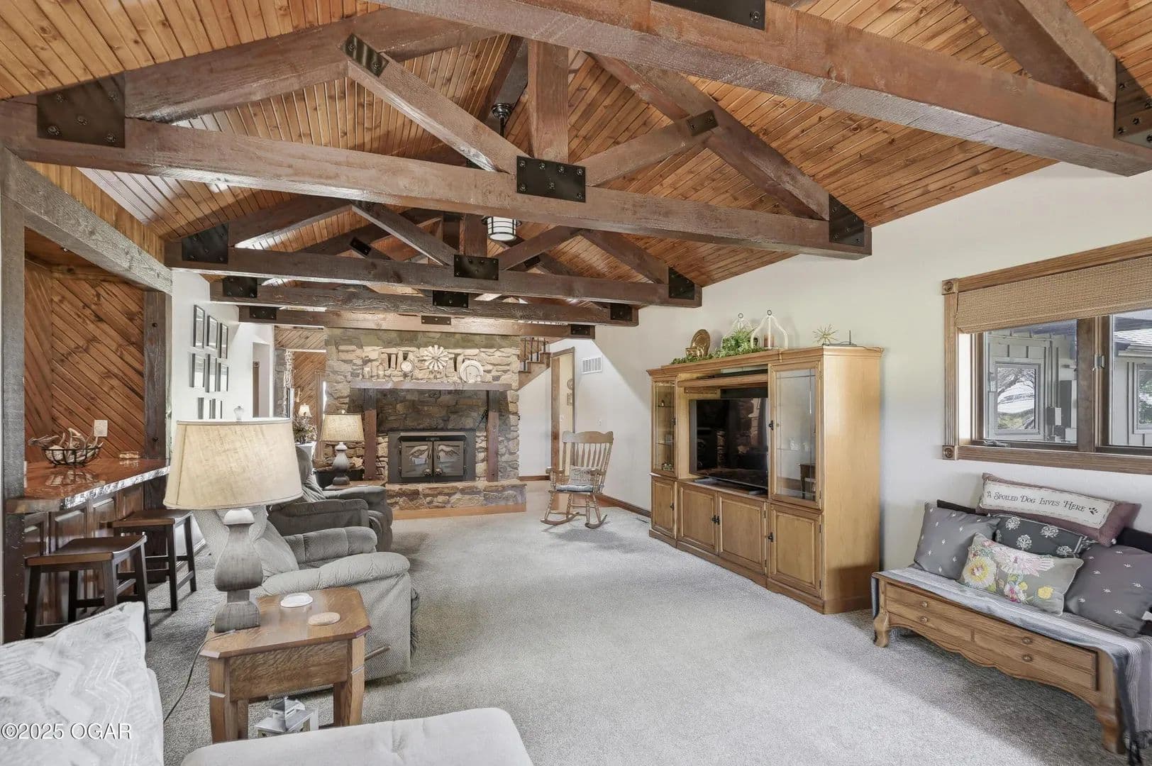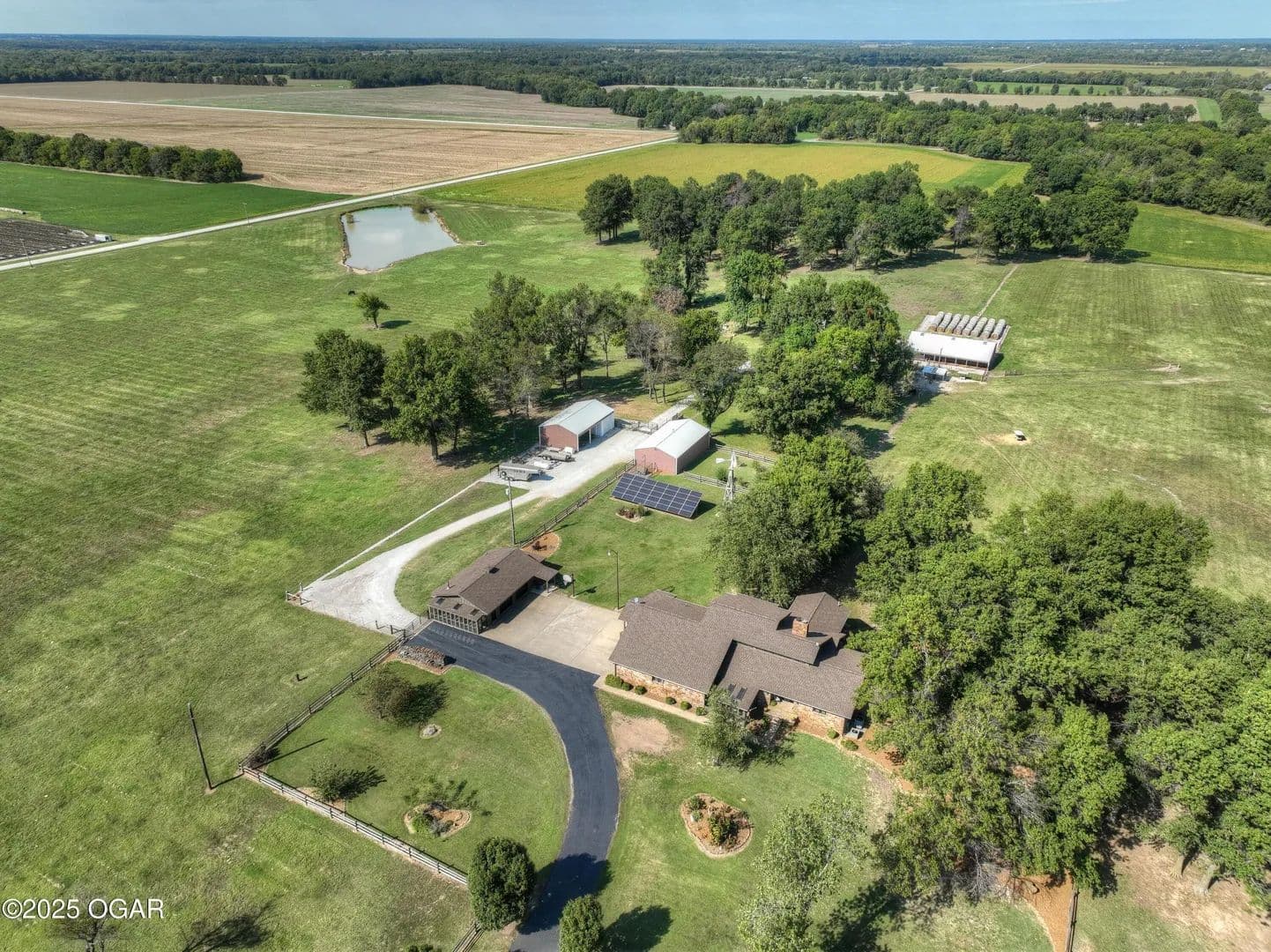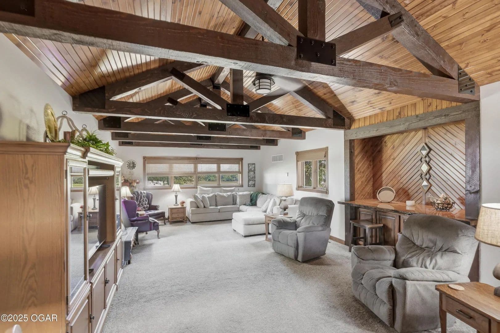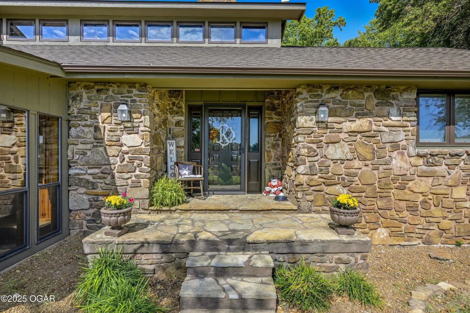 Set on 76 picturesque acres just outside Carl Junction, Missouri, this high-end custom home blends refined craftsmanship with rustic charm. Constructed with 2x6 framing and genuine Arkansas stone, it showcases thoughtful details throughout—wood beams, wood-paneled ceilings, Arkansas stone accents, and warm, natural tones that create a welcoming atmosphere. A new Tamko roof was installed on both the home and shop in September 2025, offering long-lasting peace of mind.