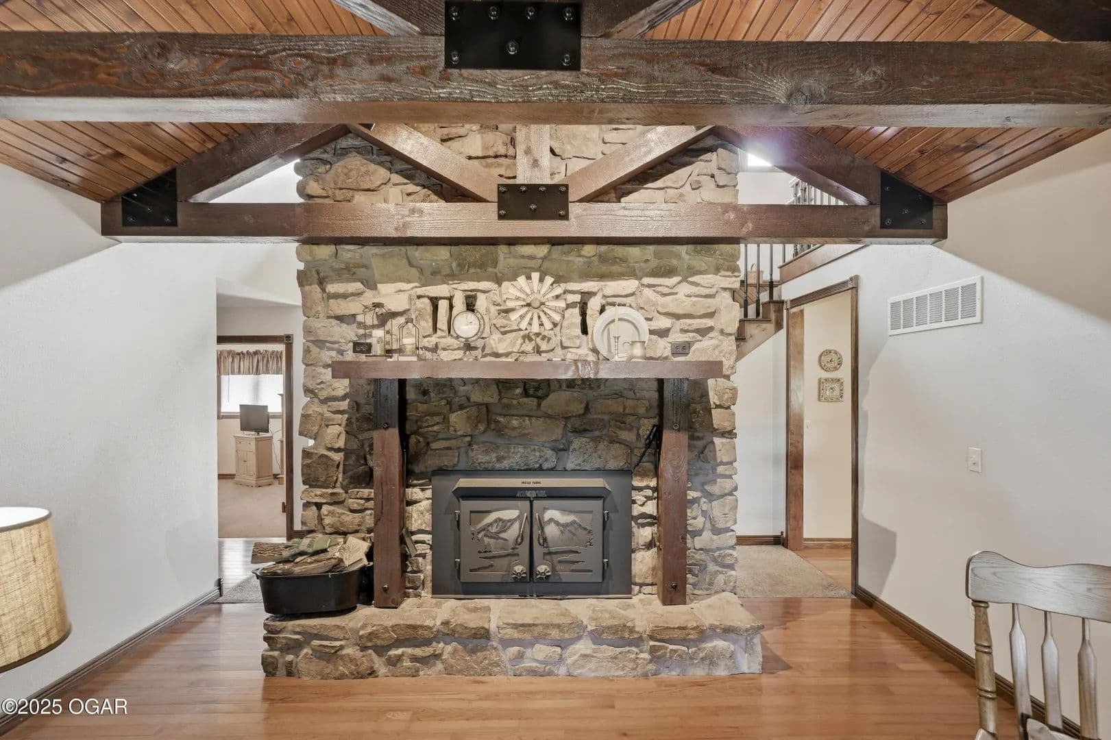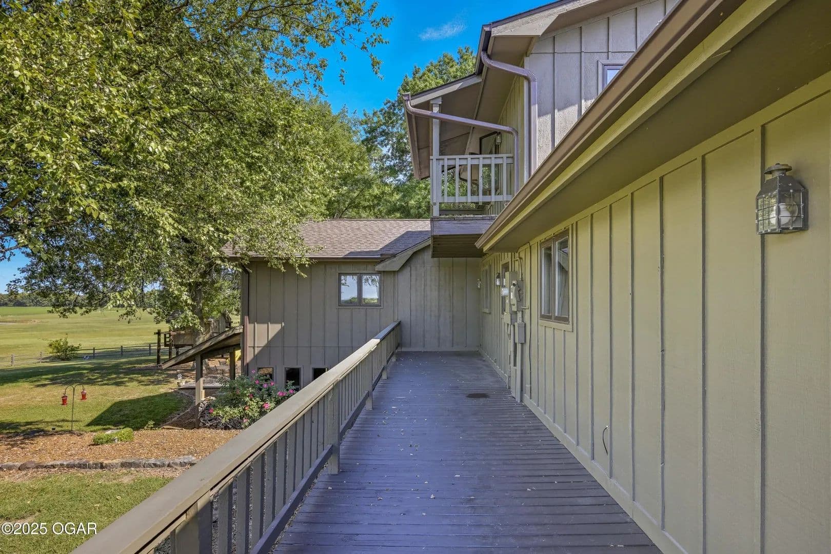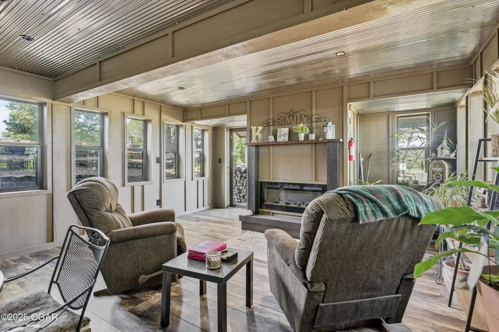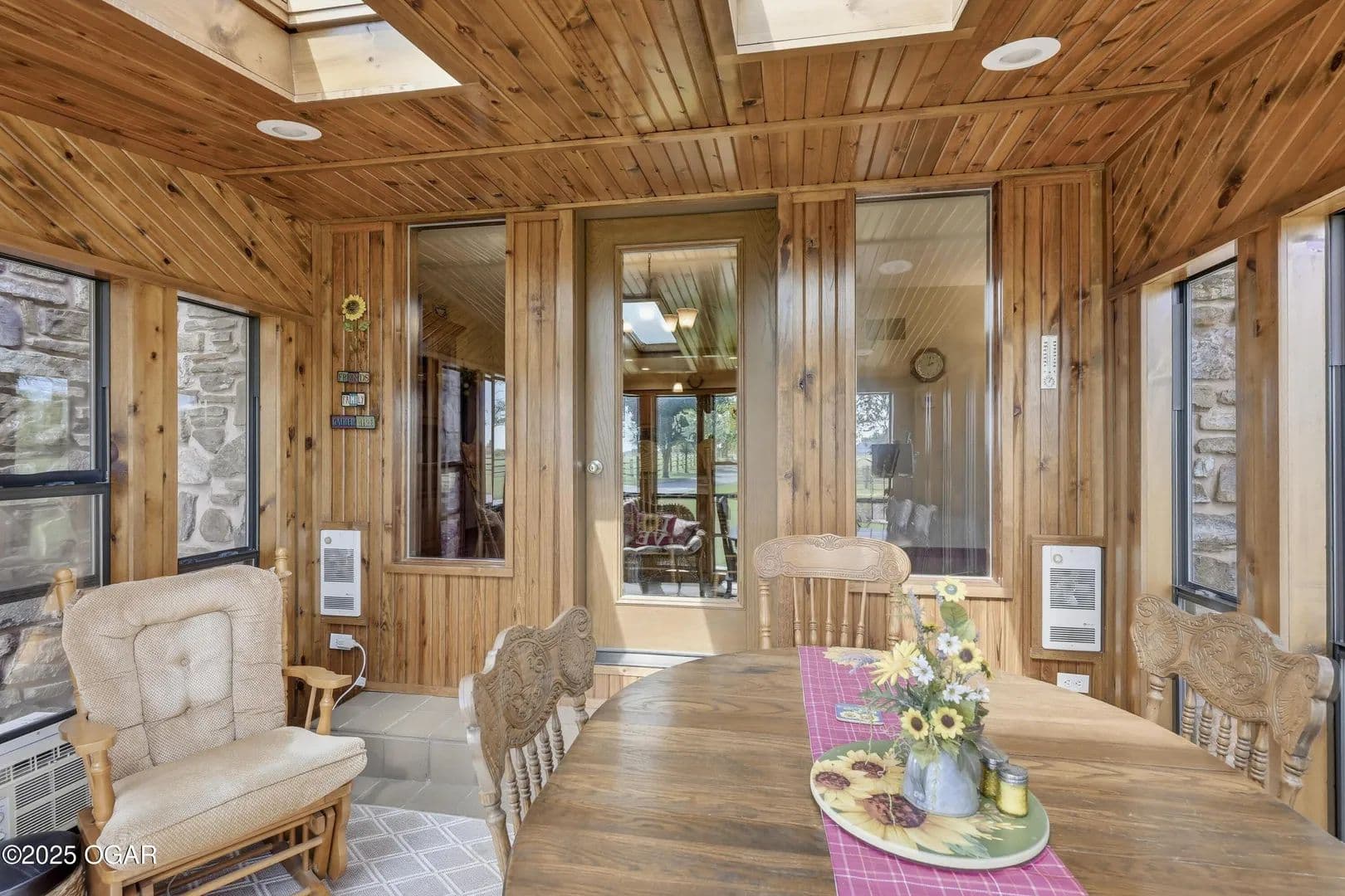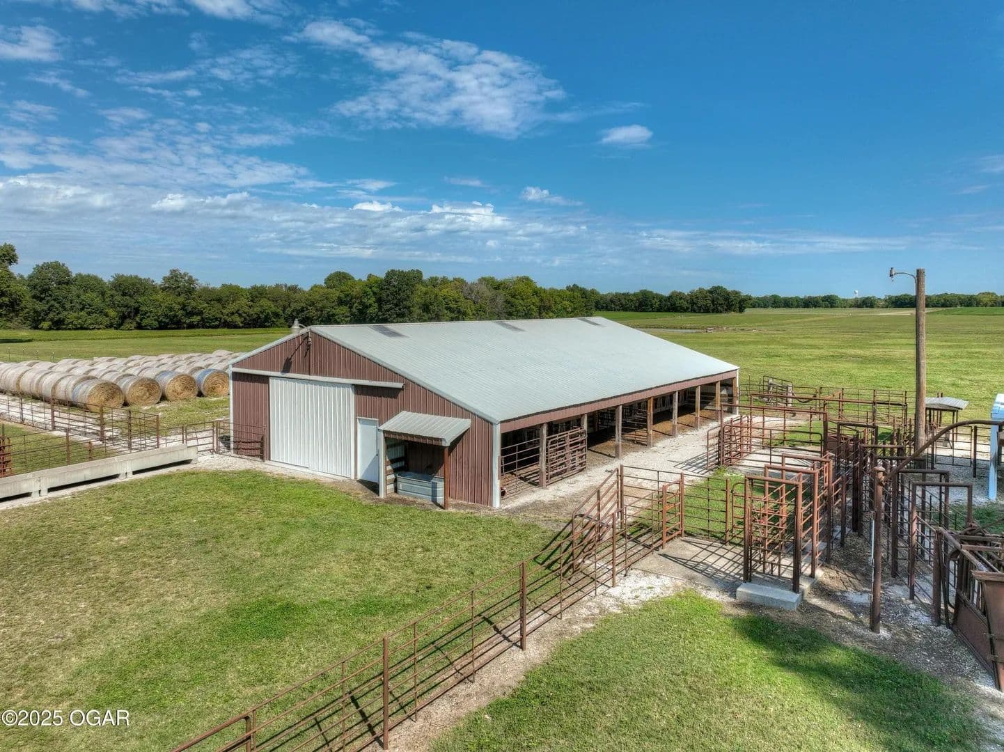 Set on 76 picturesque acres just outside Carl Junction, Missouri, this high-end custom home blends refined craftsmanship with rustic charm. Constructed with 2x6 framing and genuine Arkansas stone, it showcases thoughtful details throughout—wood beams, wood-paneled ceilings, Arkansas stone accents, and warm, natural tones that create a welcoming atmosphere. A new Tamko roof was installed on both the home and shop in September 2025, offering long-lasting peace of mind.