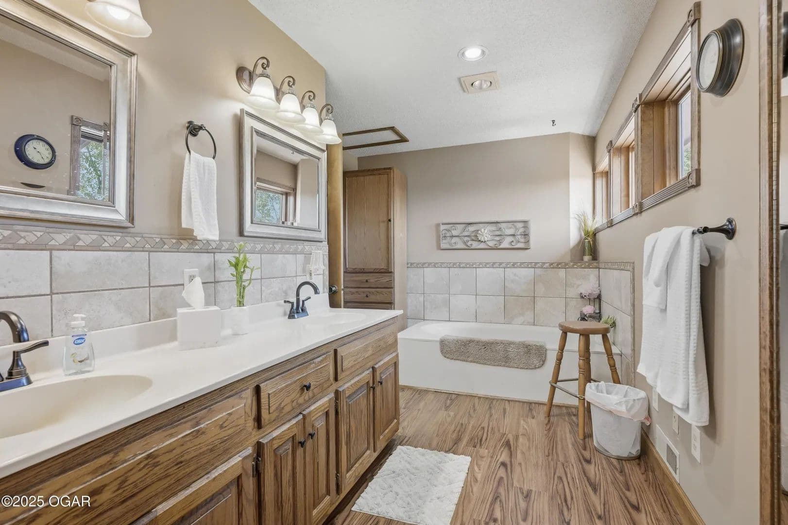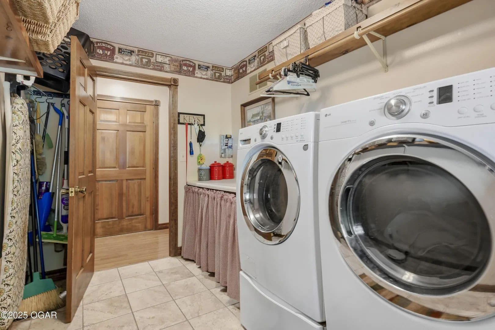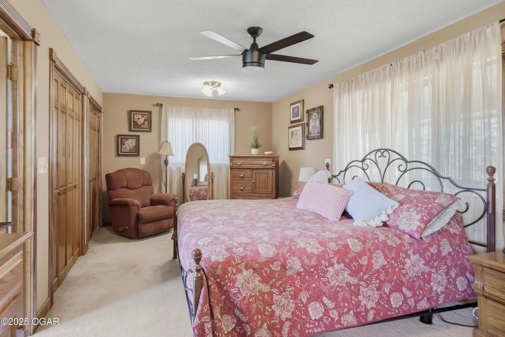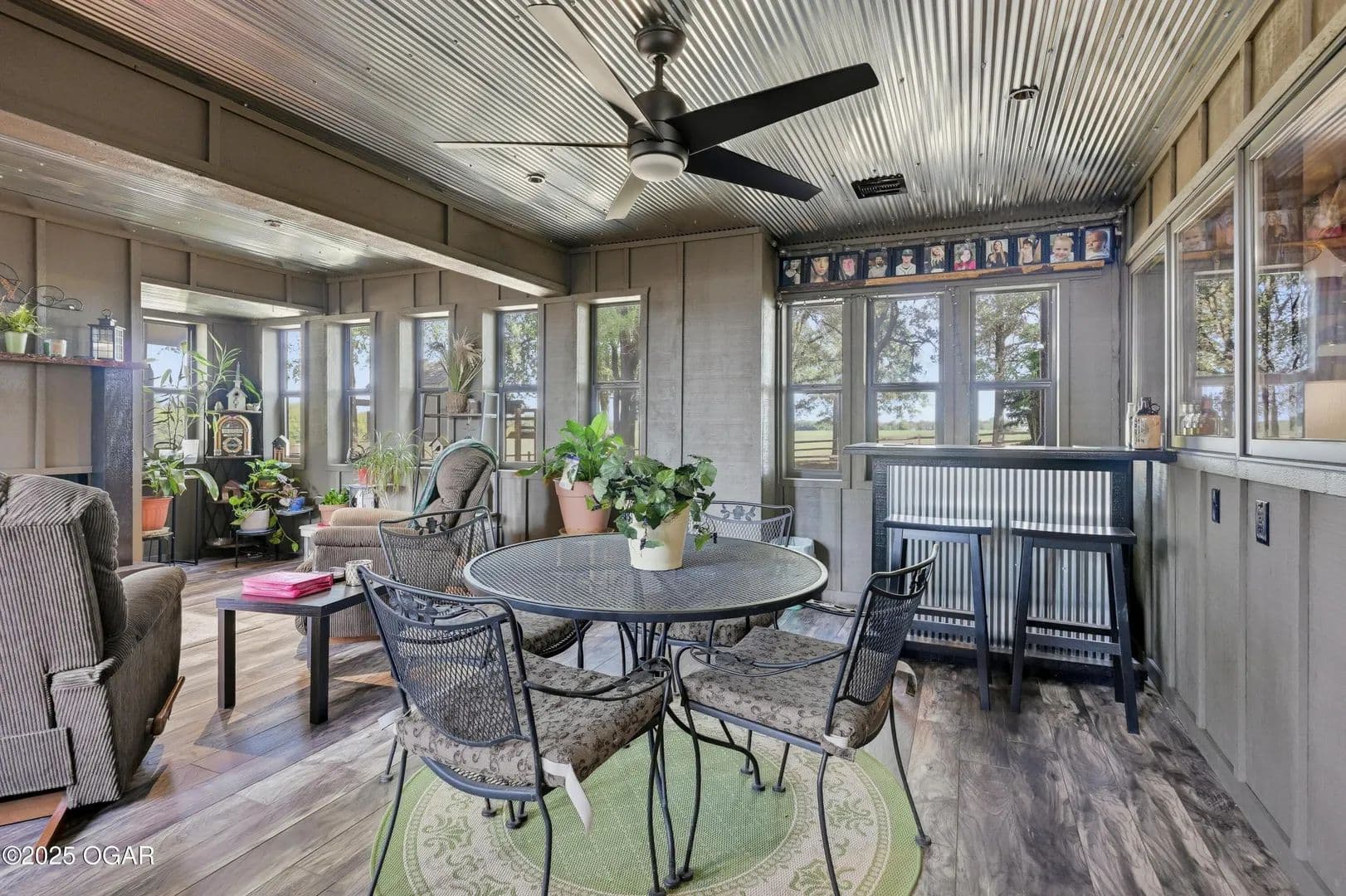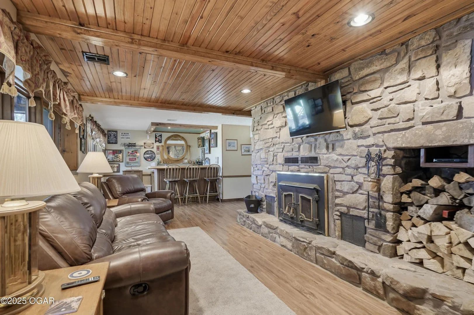Set on 76 picturesque acres just outside Carl Junction, Missouri, this high-end custom home blends refined craftsmanship with rustic charm. Constructed with 2x6 framing and genuine Arkansas stone, it showcases thoughtful details throughout—wood beams, wood-paneled ceilings, Arkansas stone accents, and warm, natural tones that create a welcoming atmosphere. A new Tamko roof was installed on both the home and shop in September 2025, offering long-lasting peace of mind.