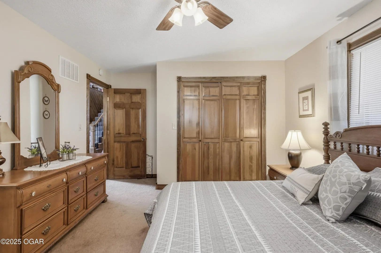 Upstairs, the large, private master suite features two closets, an ensuite bath with dual sinks, ample cabinetry, and a separate shower and toilet room. A cedar walk-in closet just off the bath adds additional storage.