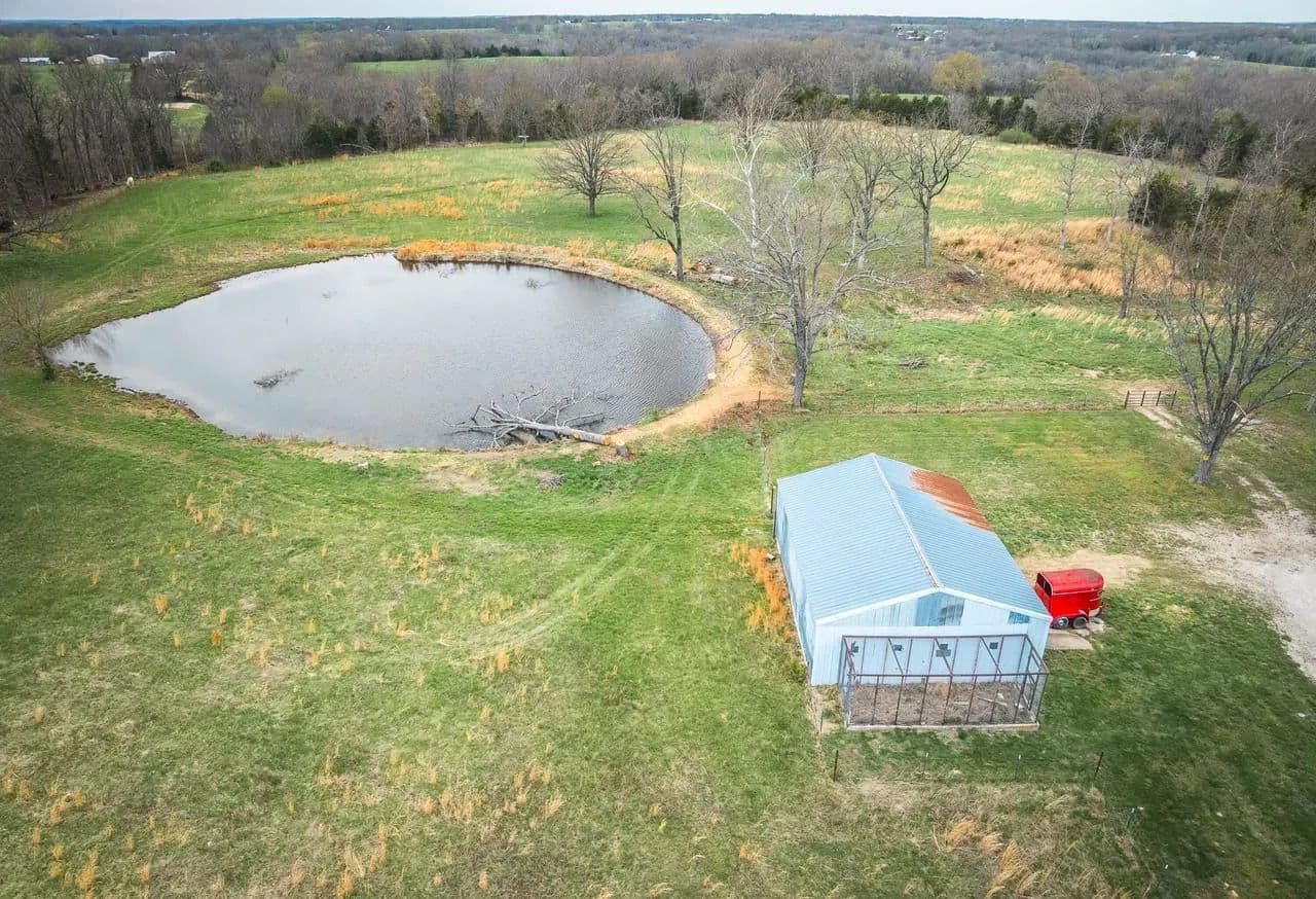 Beautiful 30-Acre Homestead with Highway Frontage – Perfect for the Weekend Getaway or Full-Time Country Living Escape to your own slice of paradise with this stunning 30-acre property, ideally located just 25 miles from the Lake of the Ozarks. This scenic tract offers a perfect blend of functionality and natural beauty ideal for homesteaders, hobby farmers, or those just looking for a peaceful retreat. The land is fully enclosed with brand-new barbed wire fencing. Enjoy the best of both worlds with improved pastureland—perfect for running cattle or keeping horses—and a stand of mature woods that offer privacy, shade, and habitat for wildlife. A large pond stocked full of catfish and bass adds both beauty and recreational opportunity. Whether you're fishing or relaxing by the water, it’s a standout feature of the property. Outbuildings include a 30x40 insulated workshop with concrete floors and electricity—ready for all your projects—and a 50x50 livestock and hay barn with electric and water, making it perfect for all your agricultural needs. There's also a well-built chicken coop ready for your flock. The cozy 2-bedroom, 2-bath home is the ideal weekend getaway or base for full-time country living. With highway frontage, access is easy and convenient, yet the property remains private and peaceful