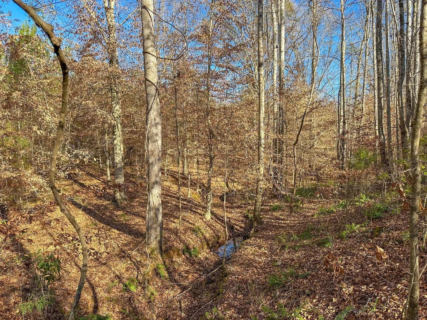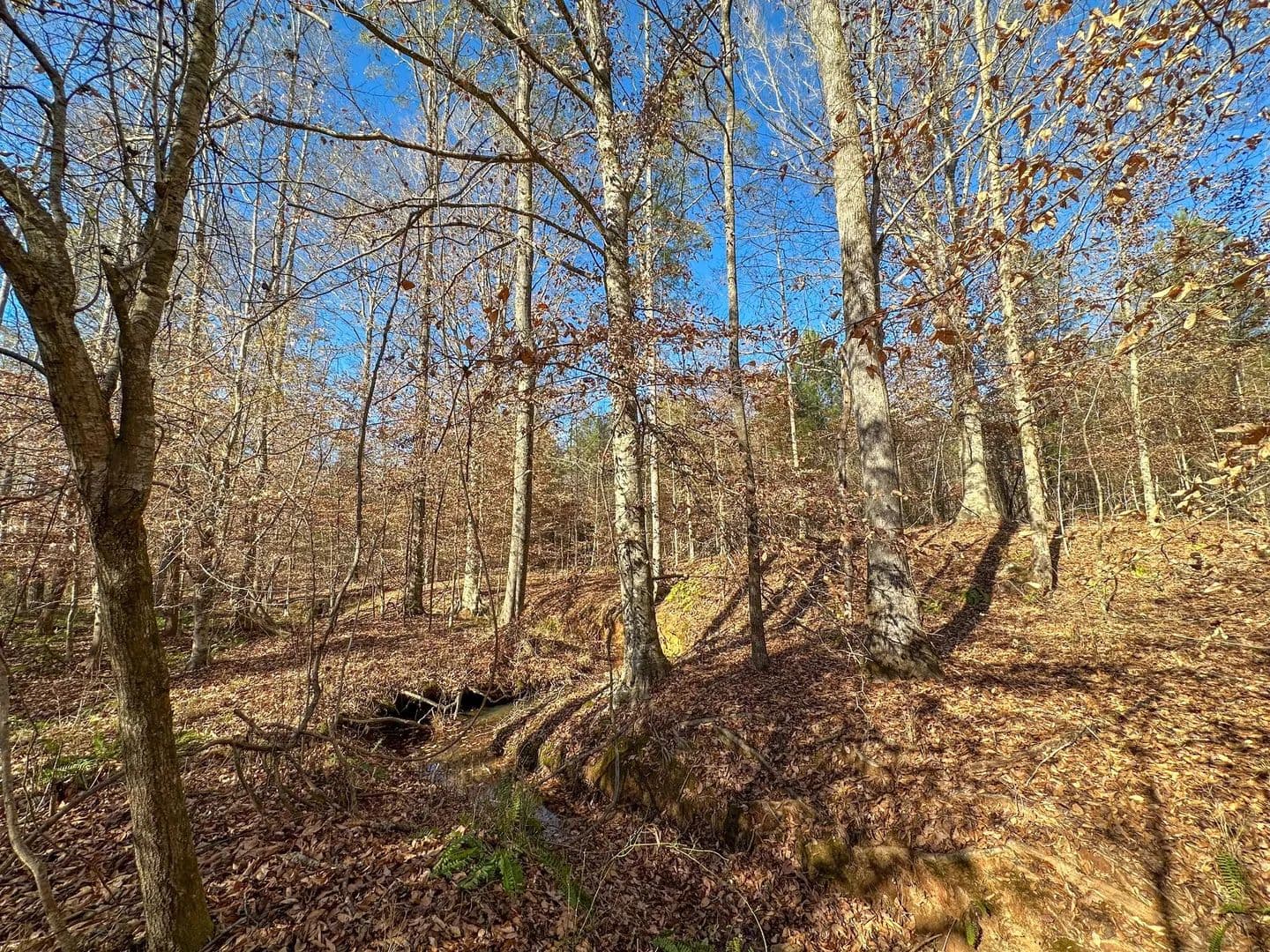 A shared rock driveway (with the neighboring landowner) leads back to a very private, square-shaped lot. A hardwood draw with mature timber and a small creek runs through the center of the property, creating an ideal setup for a home site on higher elevation overlooking the creek bottom.