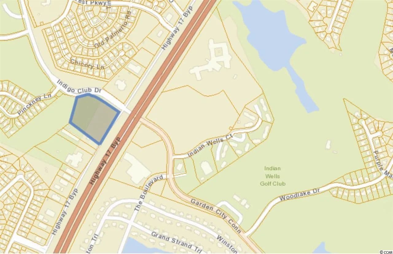 Prime location to build a shopping center or a national chain store. All cleared 4.17 acres zoned Highway Commercial at signalized corner of 17 Bypass and Garden City Connector. At the entrance to Indigo Creek Golf Course. Average Daily Traffic Count: 36,100 (Source: SCDOT) High density neighborhood with over 35,000 homes within 5 miles radius. Property site is across the Bypass from Garden City Crossing Food Lion Center and is ready to be developed.