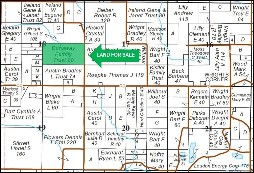Acreage: 80.00± taxable acres, 40.68± tillable acres, 38.32± wooded acres