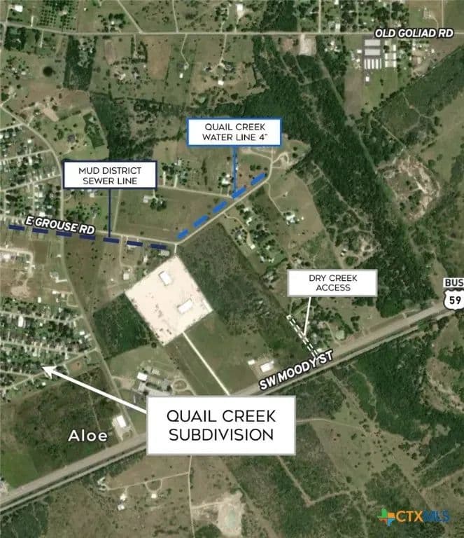 LOCATION, LOCATION, LOCATION!! This prime real estate for a development. Sellers have verified access and availability to Quail Creek MUD District utilities. They are at the corner of the property and Grouse Rd and ready to be tapped in. Sellers have a few concepts on file for developing with access from Grouse Rd and Dry Creek Rd. This is also a wonderful spot to have you a peaceful country property right inside the loop! Water well and septic are set up. An additional 5 acres is also owned by sellers for commercial real estate and can be negotiated.