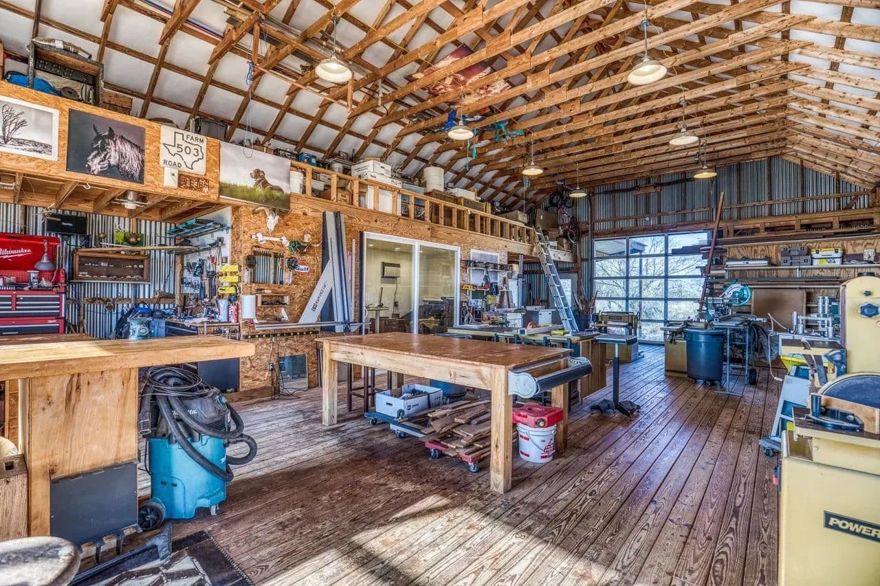 Shop: The shop includes two oversized roll-up doors, a small office with a mini-split, and electricity throughout—ready for ranch needs, storage, or projects.