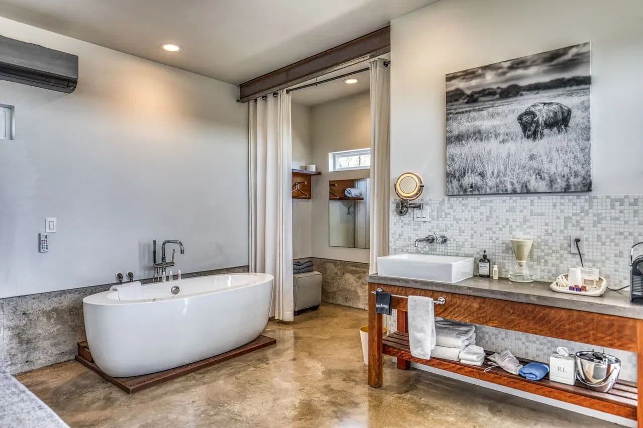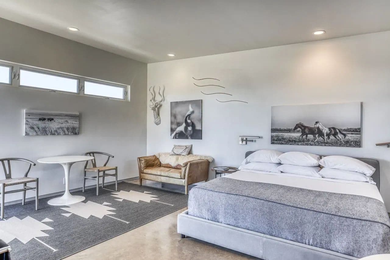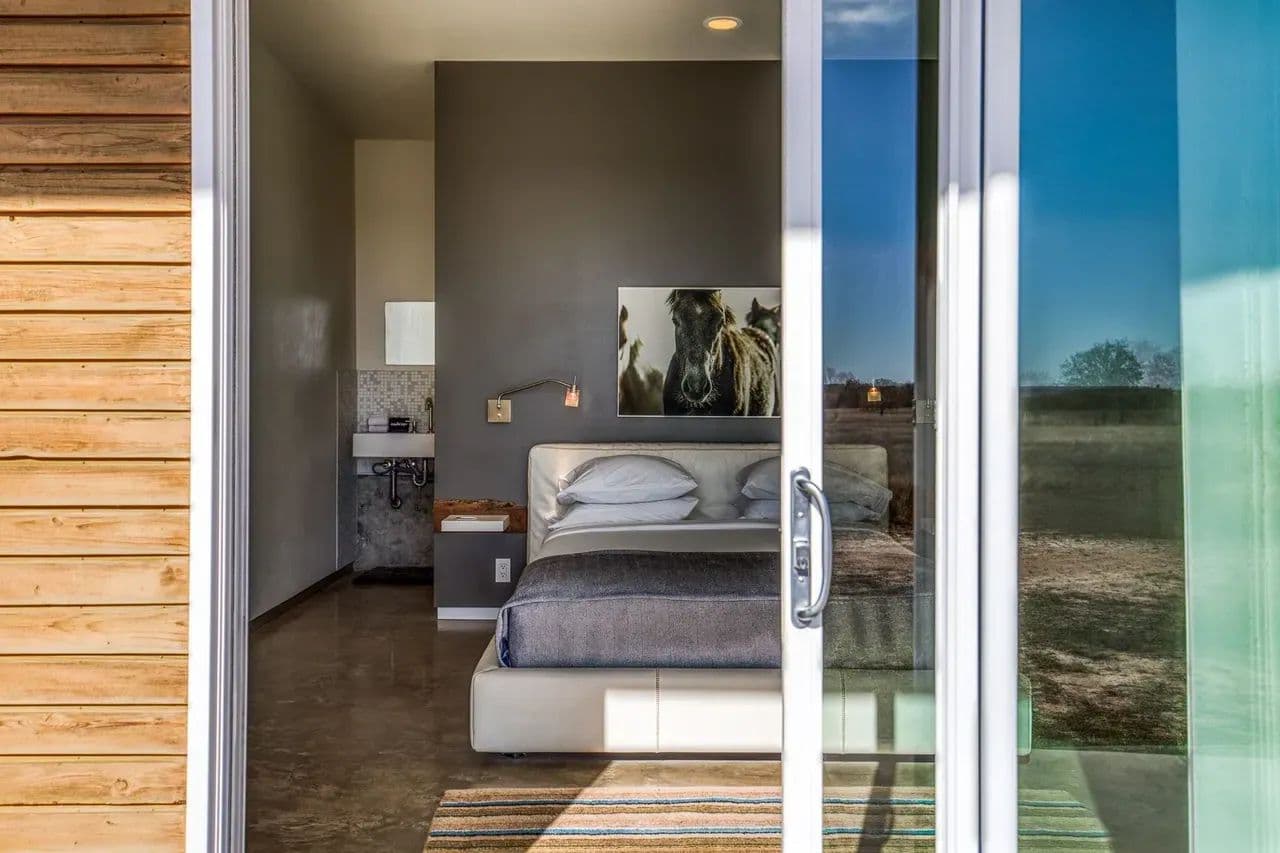 REST Cabins: For an end user, an ideal setup for hosting family and friends. This modern, five-room boutique inn offers high ceilings and large sliding glass doors that frame sweeping views of the rolling terrain. Enjoy quiet mornings, wide-open skies, and nights filled with stars—or, occasionally, the dramatic show of a West Texas thunderstorm. Sip espresso in the outdoor common area, explore the grounds on foot (including vineyards in progress), then return to refresh in the pool and unwind in total privacy.