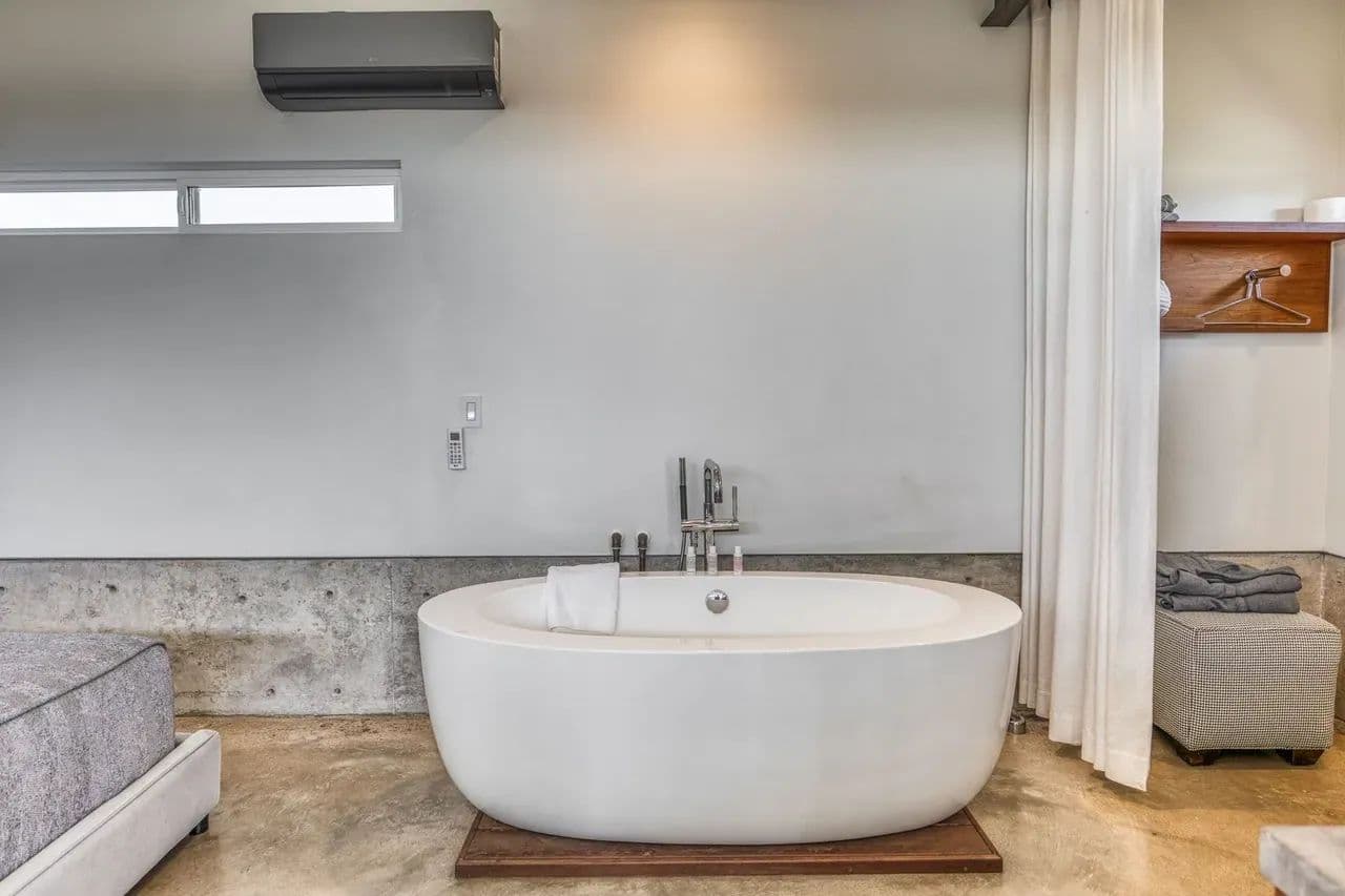 Guest House: The detached guest home is approximately 600 SF—a perfect balance of historic preservation and modern comfort. It features a full bathroom with a large soaking tub, closet space, and windows wrapping the structure for abundant natural light.