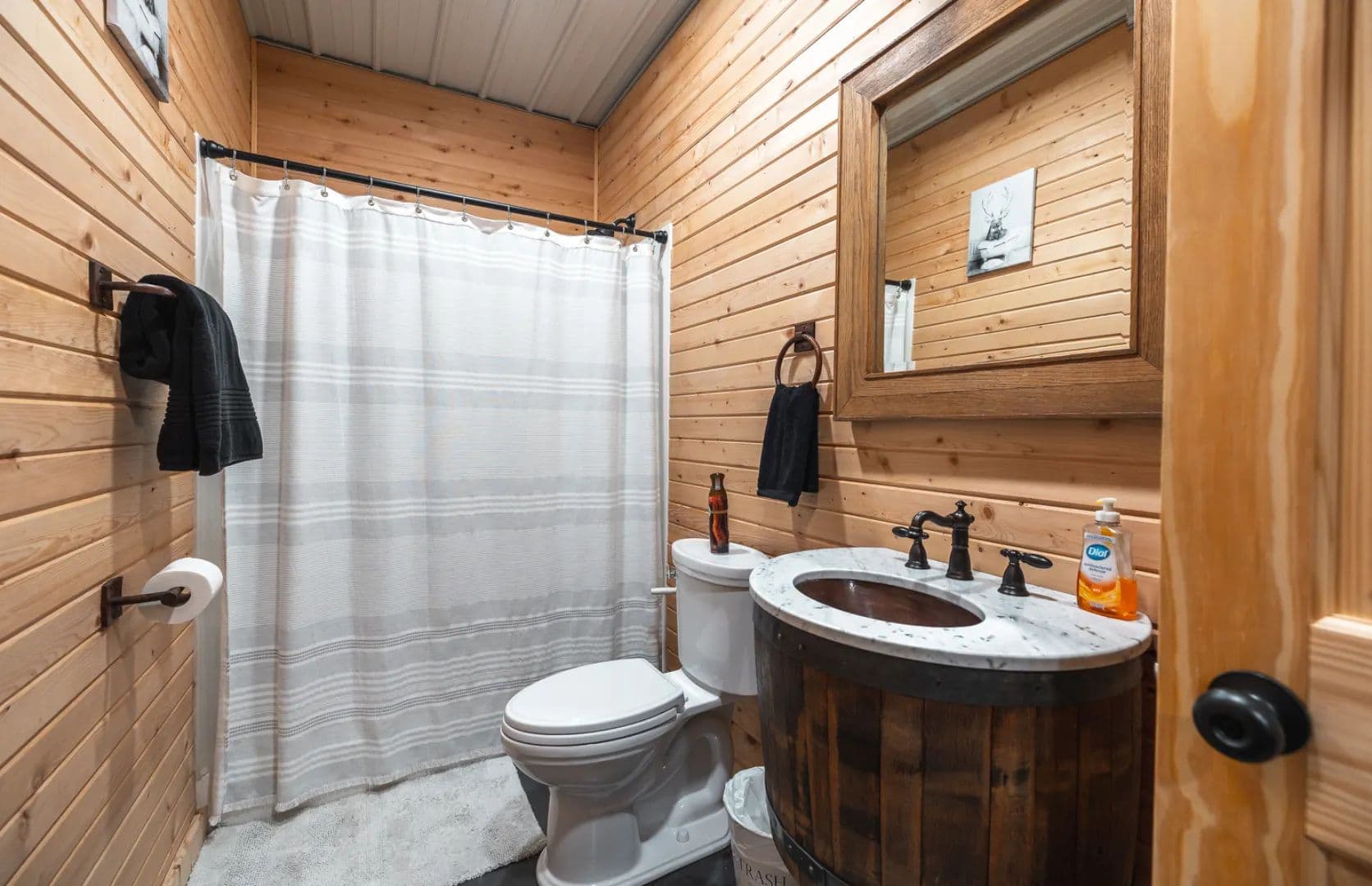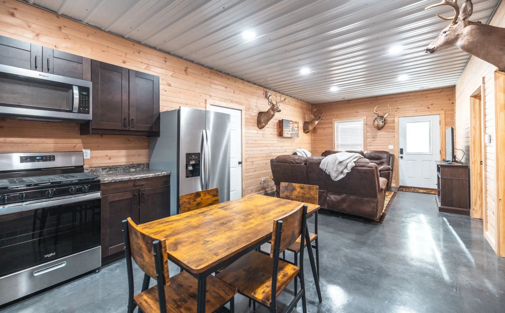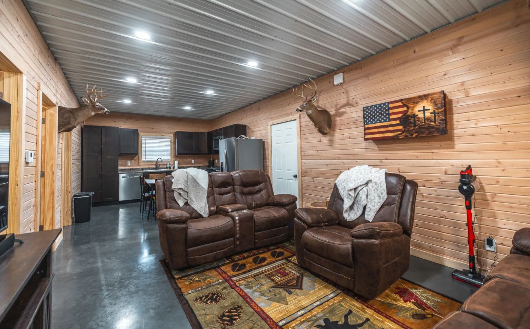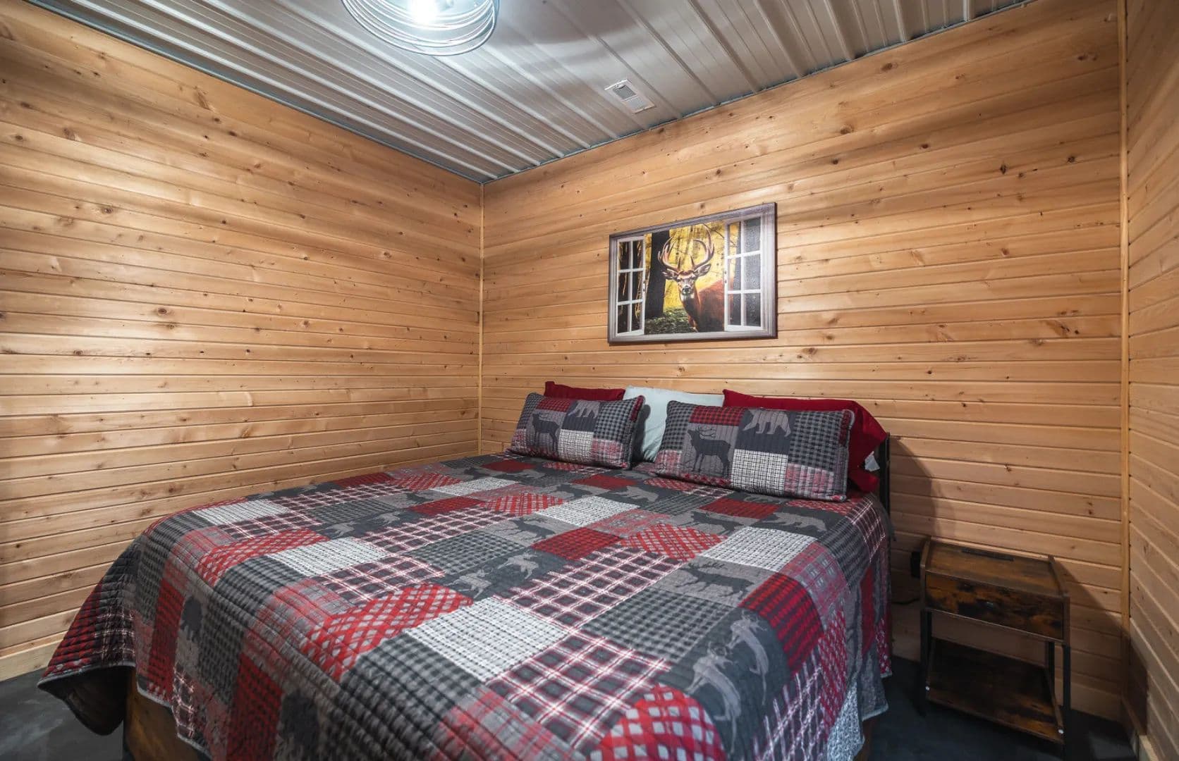 A cozy, pine-lined cabin completes the property, featuring 2 bedrooms and 1 bathroom—perfect for weekend getaways, hunting camp, or a quiet retreat. Warm wood interiors give the cabin a classic lodge feel, providing a comfortable place to relax after a day in the woods.