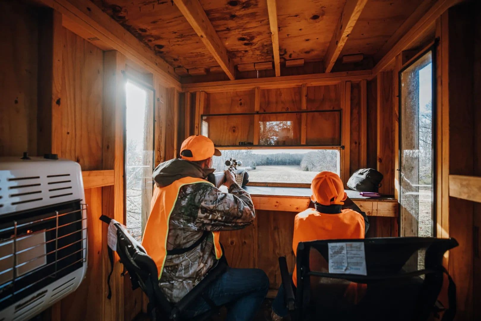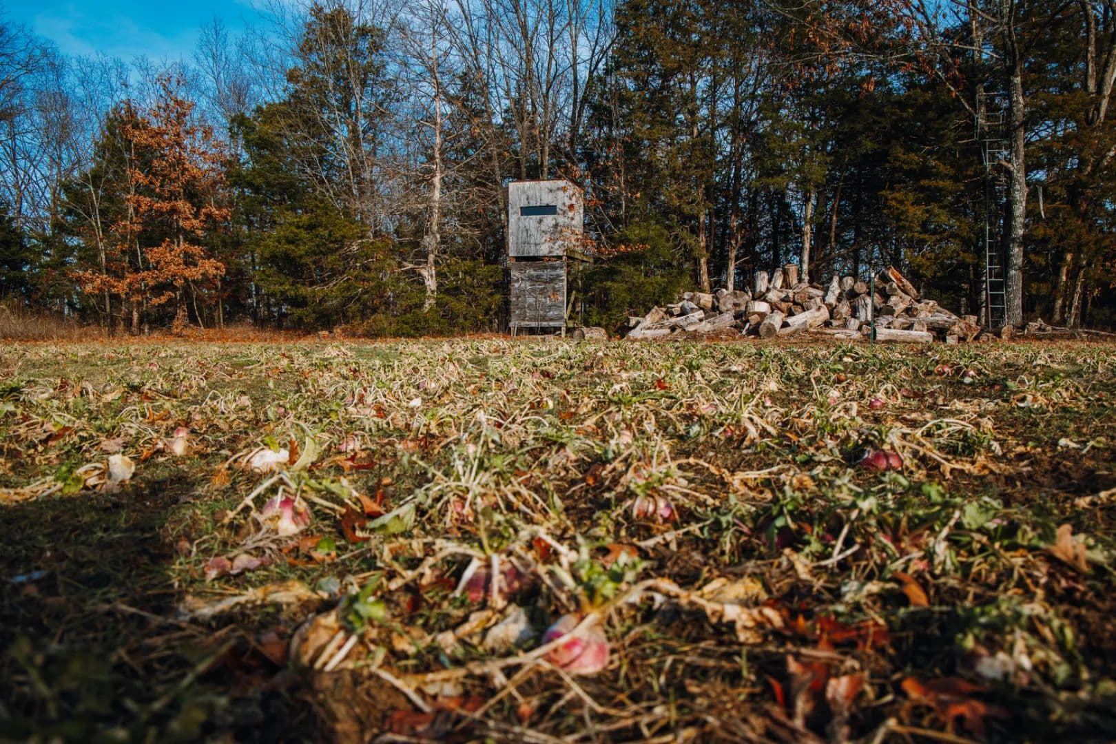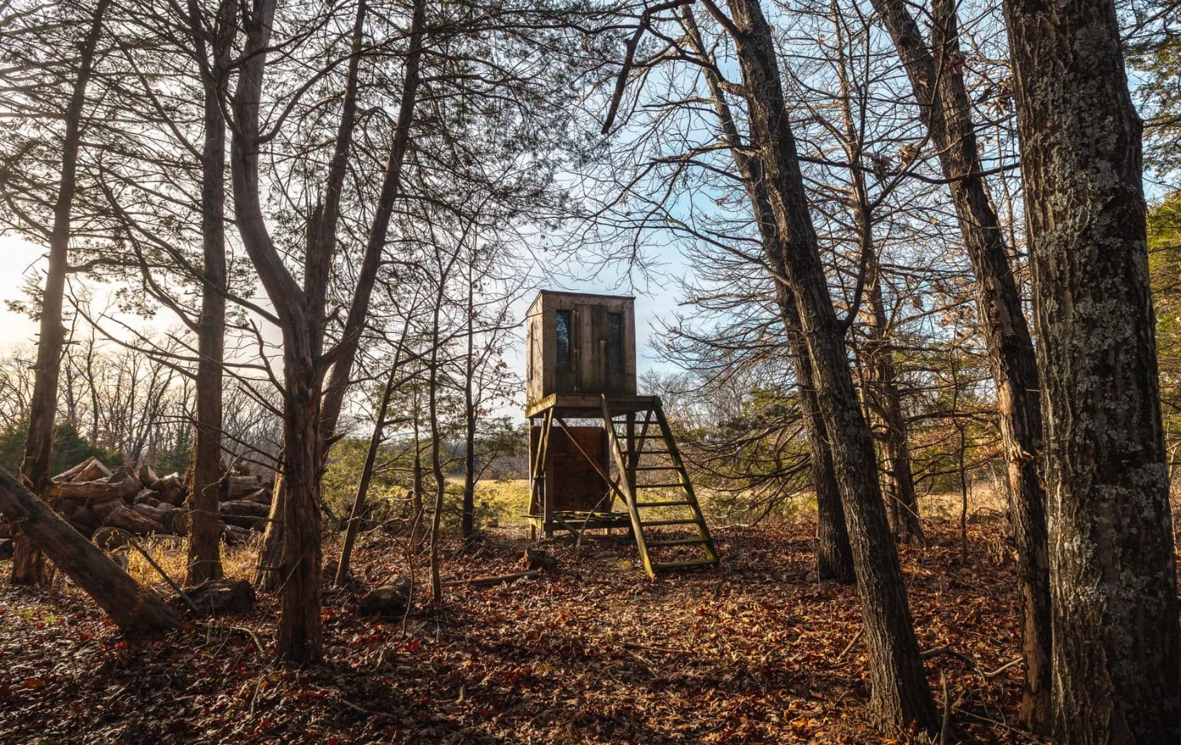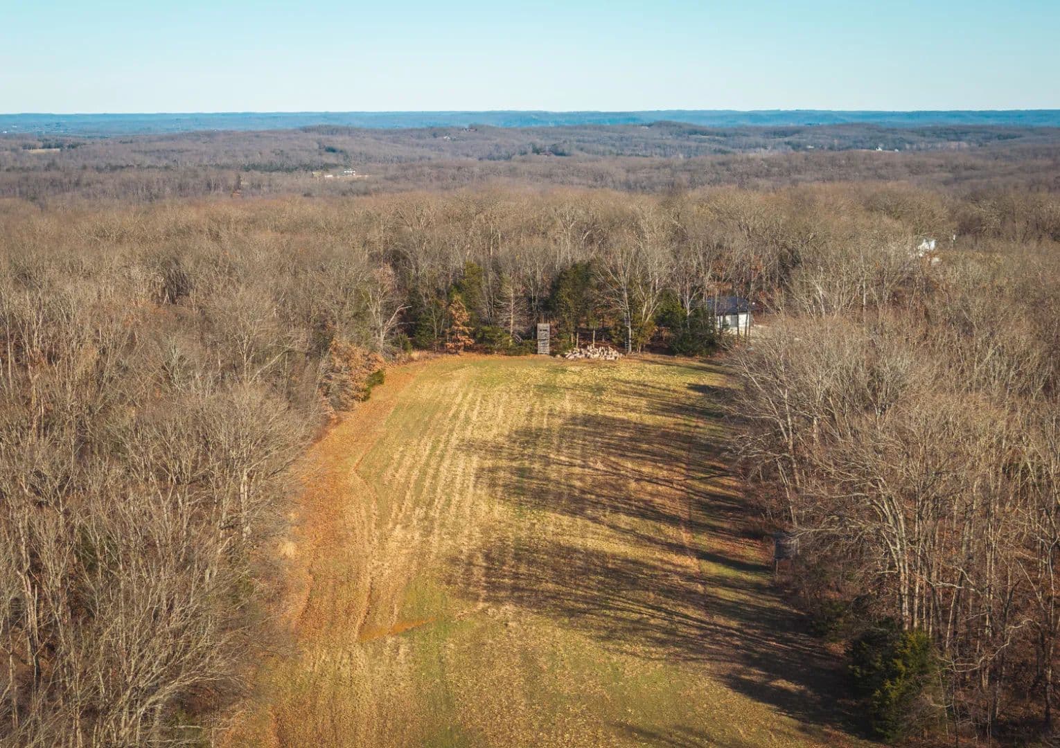 The farm is well-balanced with timber, cover, and open ground, making it a proven setup for both bow and firearm hunters. The central field allows for strategic stand placement and excellent hunting access with minimal disturbance. Three tower blind and three stands are included with the property. One really neat feature of the main blind is it being hard plumbed with propane and ceramic heater so you stay warm on those North wind cold fronts that have the big boys moving.