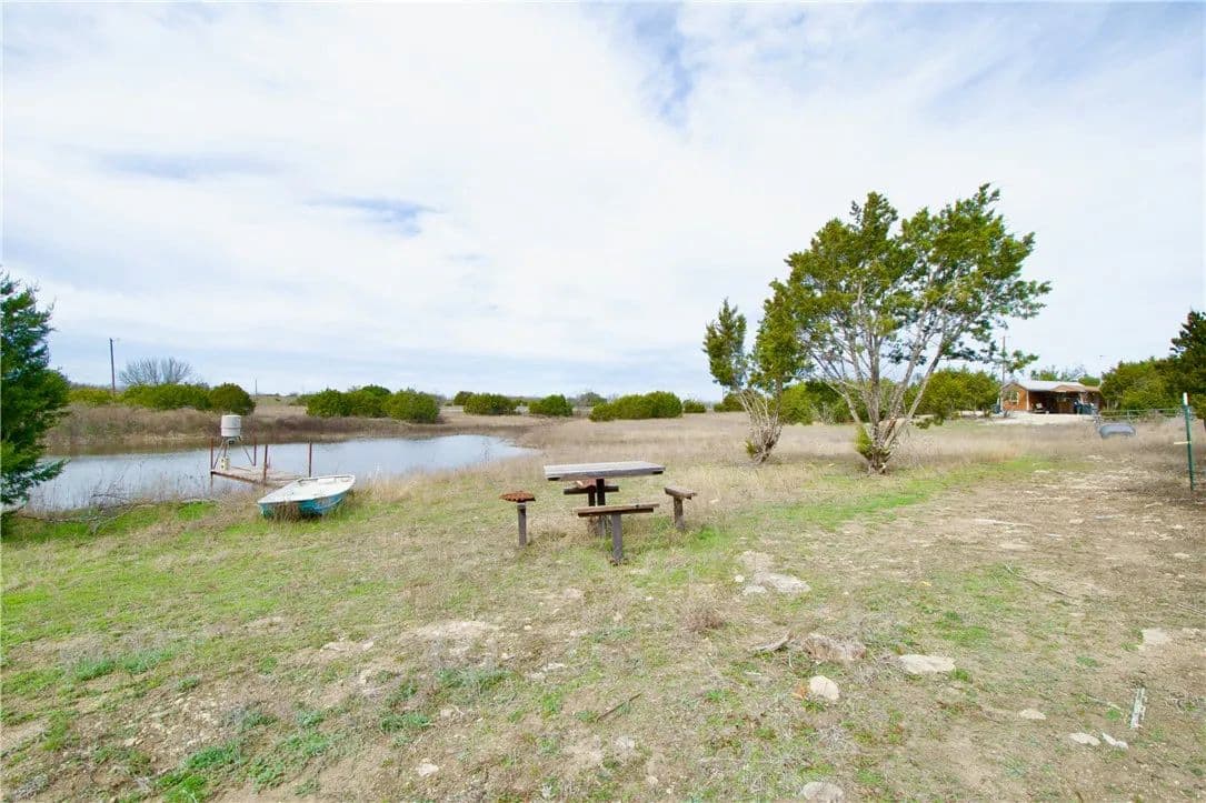 Incredible recreation property that won't break the bank. Nearly 20 acres of serene Lampasas County rural landscape ready to be your weekend getaway. This oasis is located 5 miles south of US 84, on US 281, just south of Evant. This property has a little bit of everything, especially for the outdoorsman. When you tour the property, expect to see sign and tracks from whitetail deer, hogs and dove. The main tank up front is an estimated 14 feet deep, and is stocked with black bass and perch. You can drown a hook directly off the dock, off the bank, backside berm, or perhaps from your flat bottomed boat. Though the property is heavily wooded, there is a well-established fire lane. In the middle, are two independent clearings, perfect for your stand and feeder set ups. There is a second stock tank toward the back of the property, which holds water, but is not full enough for fish. The property is secured by a 5-strand barbed wire fence, which has been replaced on three sides by the seller in the past 4 years. The back section was replaced by the adjacent property owner approximately 6 years ago. Property has septic installed, and uses a rainwater collection system to gather and distribute water to run the plumbing inside the cabin. Don't let the Lampasas address throw you, this property is located in the shadow of Evant.