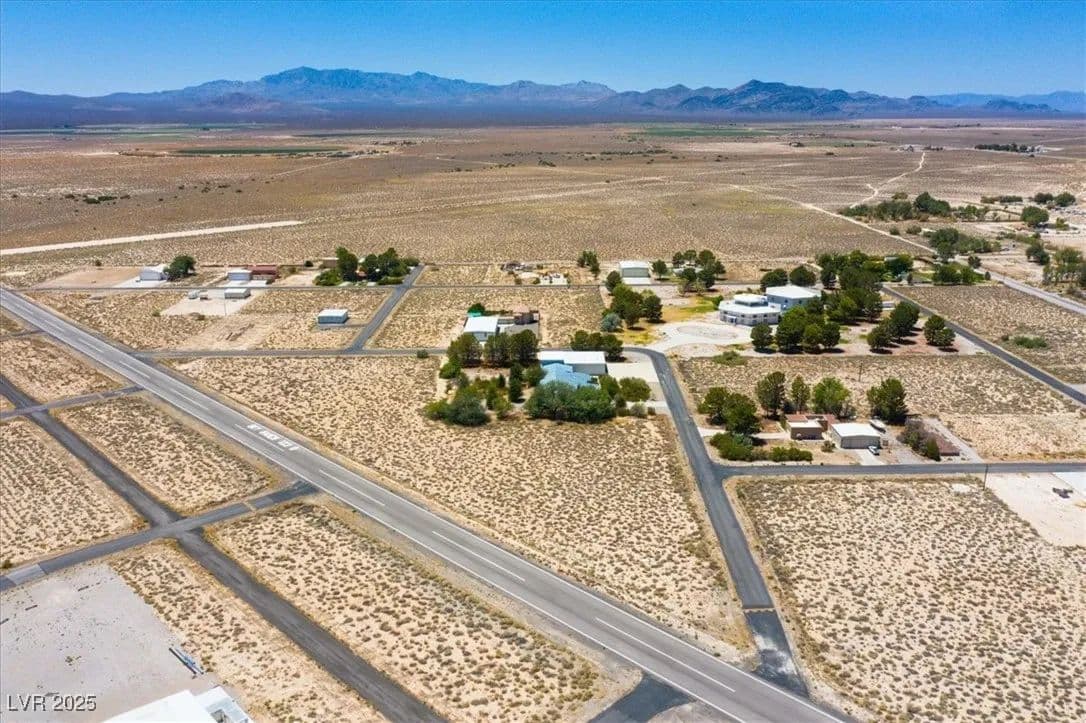 Airpark community lot Approx. 1.93 acres in Sky Ranch Estates II (3L2) with level terrain and broad building envelope Community water system in area and underground power reported nearby (buyer to verify) Ideal for custom residence or hangar-home concept in an aviation-oriented neighborhood Desert and mountain views; quiet rural setting with convenient access to local services; ~45-60 minutes to Las Vegas via I-15/Jean Access to outdoor recreation on nearby BLM lands. Nearby: Community Center (~0.8 mi), Library (~1.2 mi), Park (~1.3 mi), General Store (~1.1 mi).