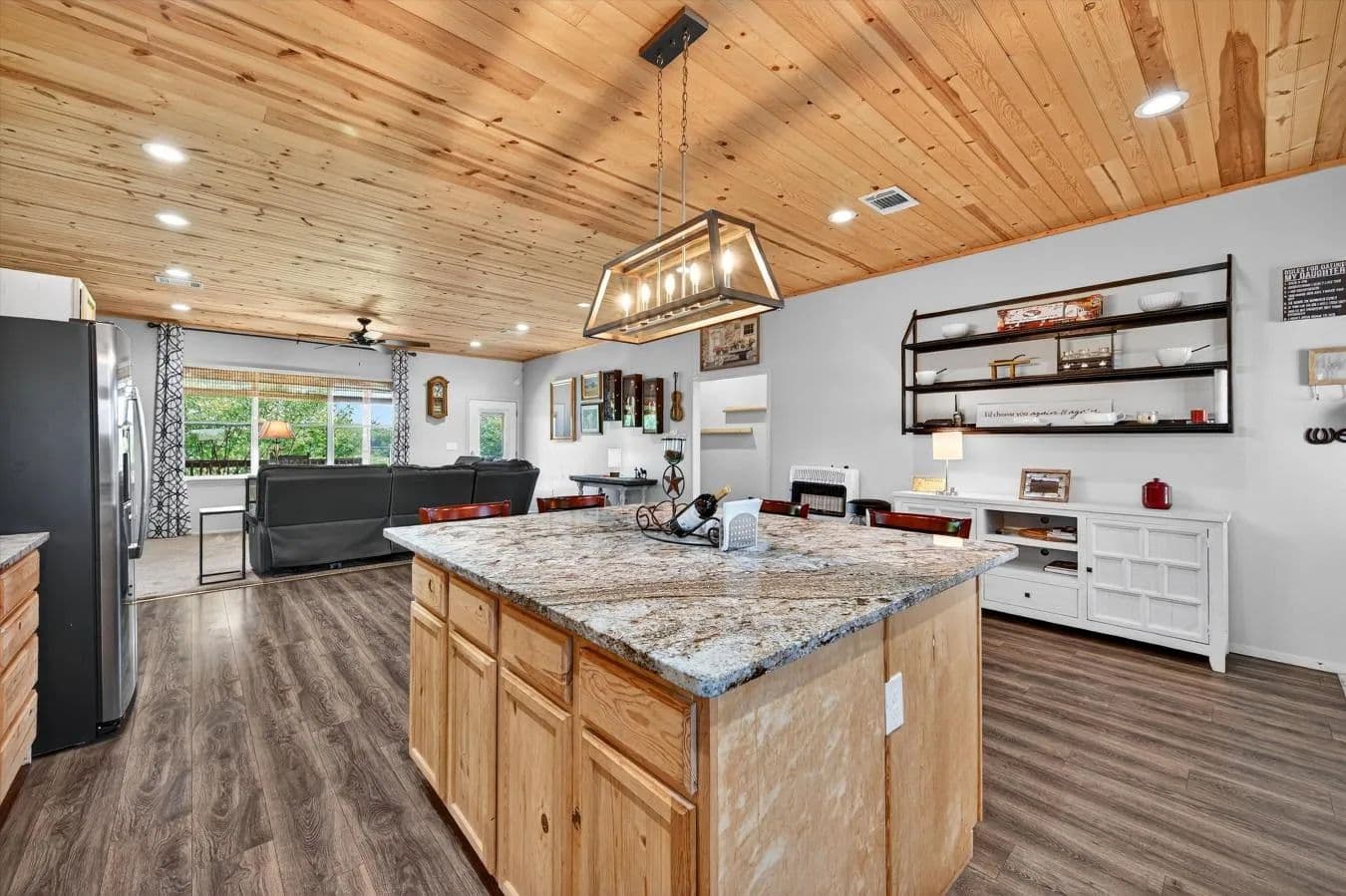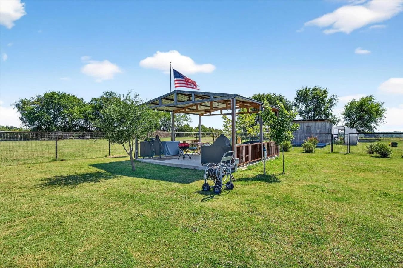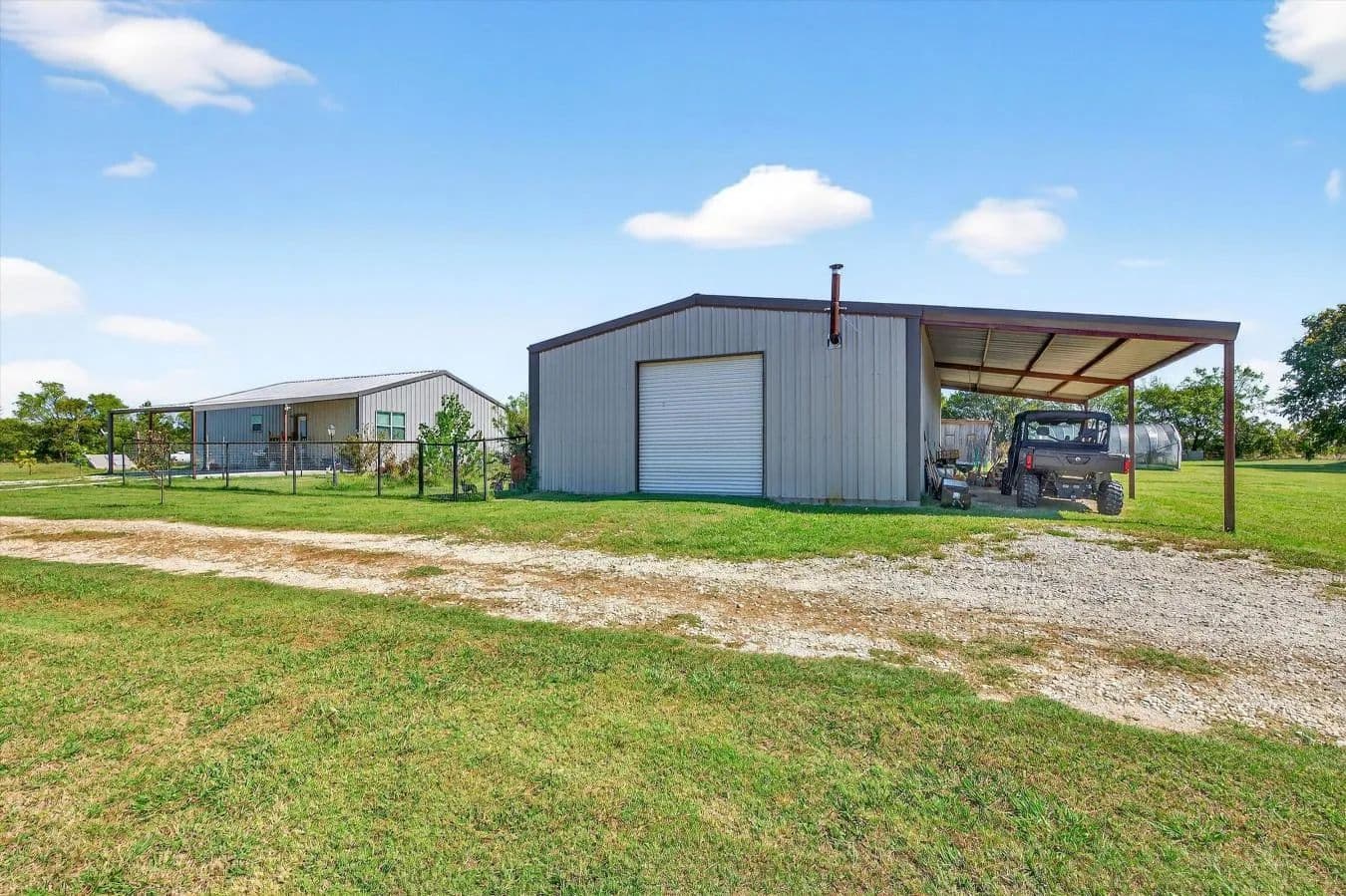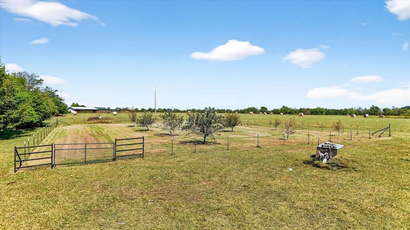 Welcome to 16980 Hayes Road in Kingston, Oklahoma - a beautiful 3-bed, 2-bath barndominium on 10.95 acres offering the perfect mix of comfort, functionality, and outdoor enjoyment. Built in 2020, this thoughtfully designed home features an open layout with a spacious living area that flows into a large kitchen complete with a granite-topped island, abundant cabinetry, and extensive counter space. The oversized utility room provides ample storage and space for pantry shelving. The primary suite includes an ensuite bath and a generous walk-in closet, creating a comfortable retreat after a long day. Outside, enjoy peaceful mornings or shaded evenings on the covered back porch overlooking the fenced backyard - ideal for pets or a garden. A large pavilion nearby provides the perfect setting for cookouts, gatherings, and evenings under the Oklahoma sky. The property also includes a fenced orchard with producing apple, peach, plum, and pear trees, plus a greenhouse and chicken coop for those wanting a touch of self-sufficiency. There's even an older water well that's functional but not currently connected to power - a great opportunity for future irrigation of the orchard or gardens. A separate 30×40 shop on a concrete slab adds incredible versatility with its own bathroom and finished office currently used as a music studio, ideal for hobbies or a home-based business. There's also an additional shed for tractor or boat storage and covered RV parking on its own concrete pad. Located just minutes from launching your boat on Lake Texoma or heading to Megastar Casino, this property combines country charm with convenience - the perfect setup for a primary home, vacation getaway, or hobby farm.