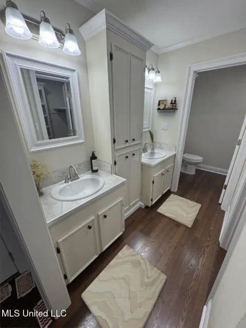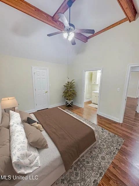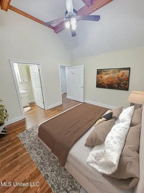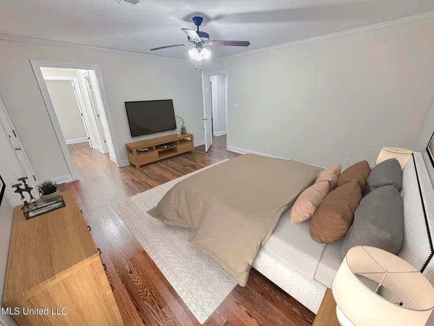 The master suite offers a luxurious retreat with his-and-hers vanities, a large walk-in closet, and plenty of natural light. One guest bedroom includes its own private bath — perfect for visitors or family.