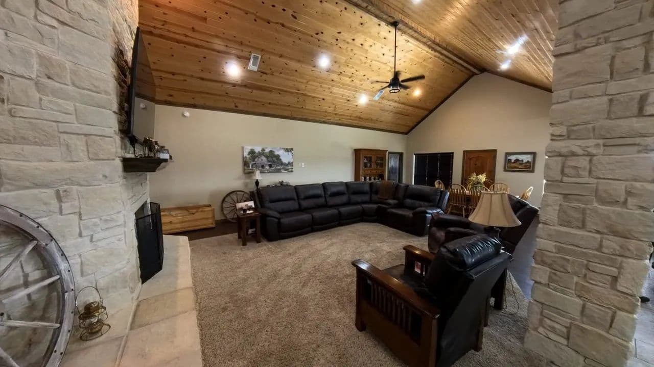 Step outside and take in 49.5 beautiful acres of privacy and possibility. Enjoy peaceful mornings on the expansive covered porches as you overlook the property, or gather with loved ones in the evenings beside the outdoor fireplace, sharing stories as the sun sets over the pond. The land features an approx. 7-acre stocked pond filled with Bass, Catfish, Crappie, and Perch—ideal for fishing, kayaking, or simply enjoying the view.