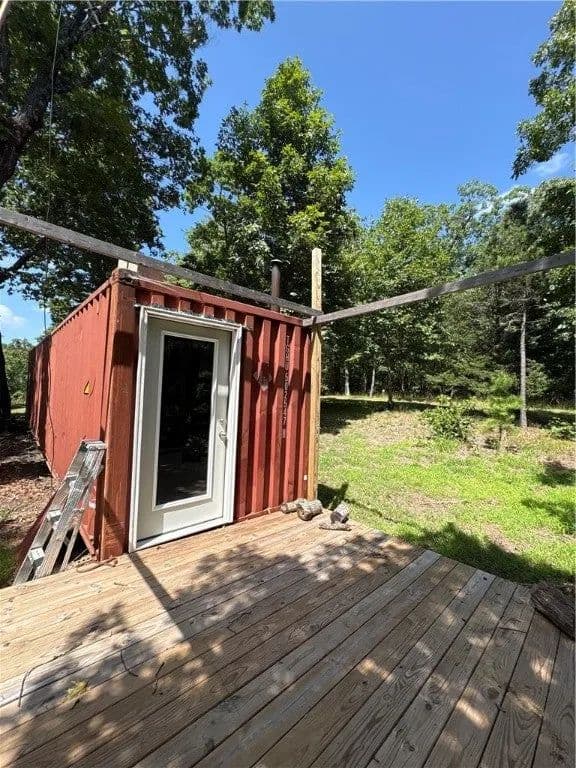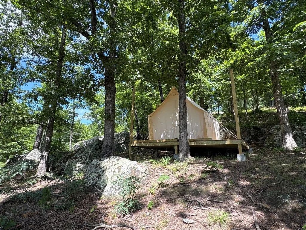 4.9 acres offering privacy close to the end of the road and no restrictions! Property features electric, rural water, septic, and a new storm shelter (11/2024). Includes a leveled shipping container with door, window, and wood stove. Large pad for camper and a 2020 camping trailer included in the purchase price. Multiple potential build sites and a viewing deck overlooking a finger of the Buffalo River Grand Canyon - endless possibilities for your dream getaway, build, or retreat.