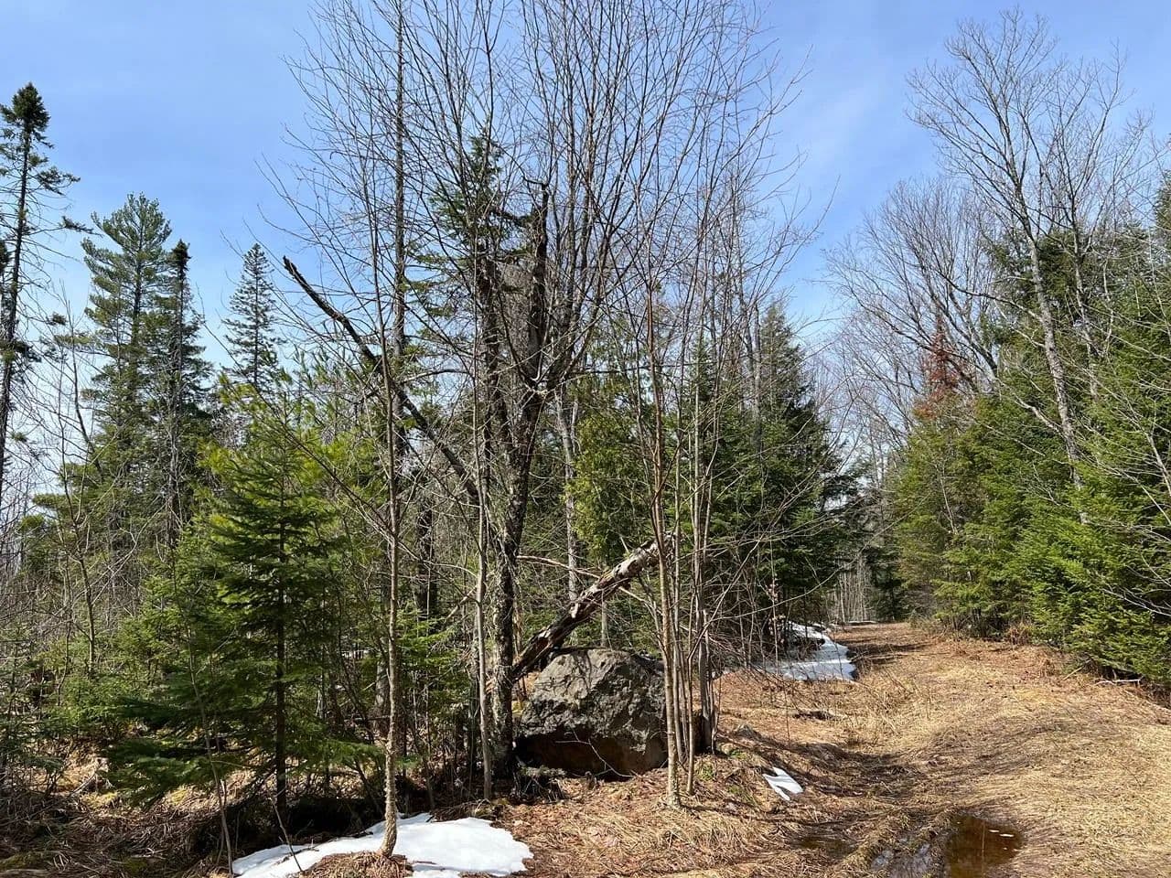 Awesome 80-acre parcel featuring an extensive network of wonderful trails to easily access this fantastic land that borders County Land on both the North and West sides! The property features huge white pine, maple, yellow birch, poplar and balsam. Here you’ll find gentle rolling land, 2 permanent hunting stands, small clearing perfect fora food plot, apple trees and a small pond, all of which are perfect features wildlife love! Easy access, is located with direct access from this land to the ATV/UTV and snowmobile trails and is close to the Pine Lk boat landing. Overhead transmission power lines are on the far east side of land. This is a must see if you are in search of acreage!