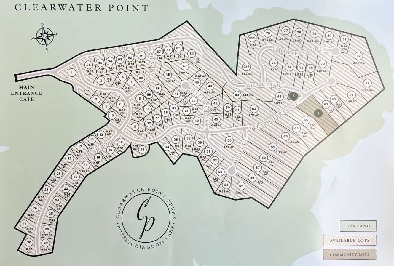 Discover Lot 43 Water Lily Lane at Clearwater Point, a premier .89-acre home site nestled on the breathtaking Possum Kingdom Lake. This budding community, promises an array of upscale amenities, including a resort-style pool, community gathering areas, a pickleball court, a putting green, basketball court, and pavilions. Residents will also enjoy the POTENTIAL for private boat docks and launching facilities, alongside outdoor leisure spaces. Essential utilities, including underground electricity and co-op water, will be seamlessly integrated at each homesite. With modern conveniences and dining options just a short drive away and the allowance for short-term rentals, this property offers an exceptional lifestyle opportunity.