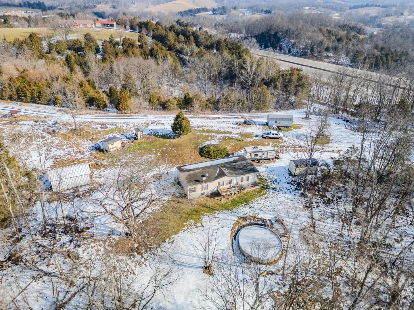 Looking for privacy, land, and value? This 3 bedroom, 2 bath manufactured home on 5 acres just outside of Georgetown, Kentucky offers a rare opportunity for a secluded rural lifestyle at an affordable price. Priced under $300,000, this property is ideal for buyers seeking acreage near Georgetown KY, a peaceful setting, and room to spread out. Nestled among mature trees, the home provides nearly-complete privacy once the trees bloom, creating a quiet retreat for most of the year. The home sits on a sturdy block foundation, offering durability and peace of mind. Outdoor living is great with decks on both sides of the home and an above-ground pool with a recently built deck, perfect for entertaining or relaxing in your private backyard. Inside, you'll find a functional open layout with a kitchen featuring an island, breakfast bar, and ample cabinet space. The primary bedroom includes a soaking tub, open shelving, and generous storage. With three bedrooms and two full baths, this home offers flexible living space. All bedrooms feature walk-in closets. This property is perfect for buyers looking for homes with land near Georgetown KY. Selling as-is with inspections welcome. The shed at the far end of the property past the house conveys and the other outbuildings will be removed. Enjoy the best of both worlds...peaceful rural living with convenient access to Georgetown amenities. Schedule your private showing today...properties with this much land and privacy under $300K don't last long