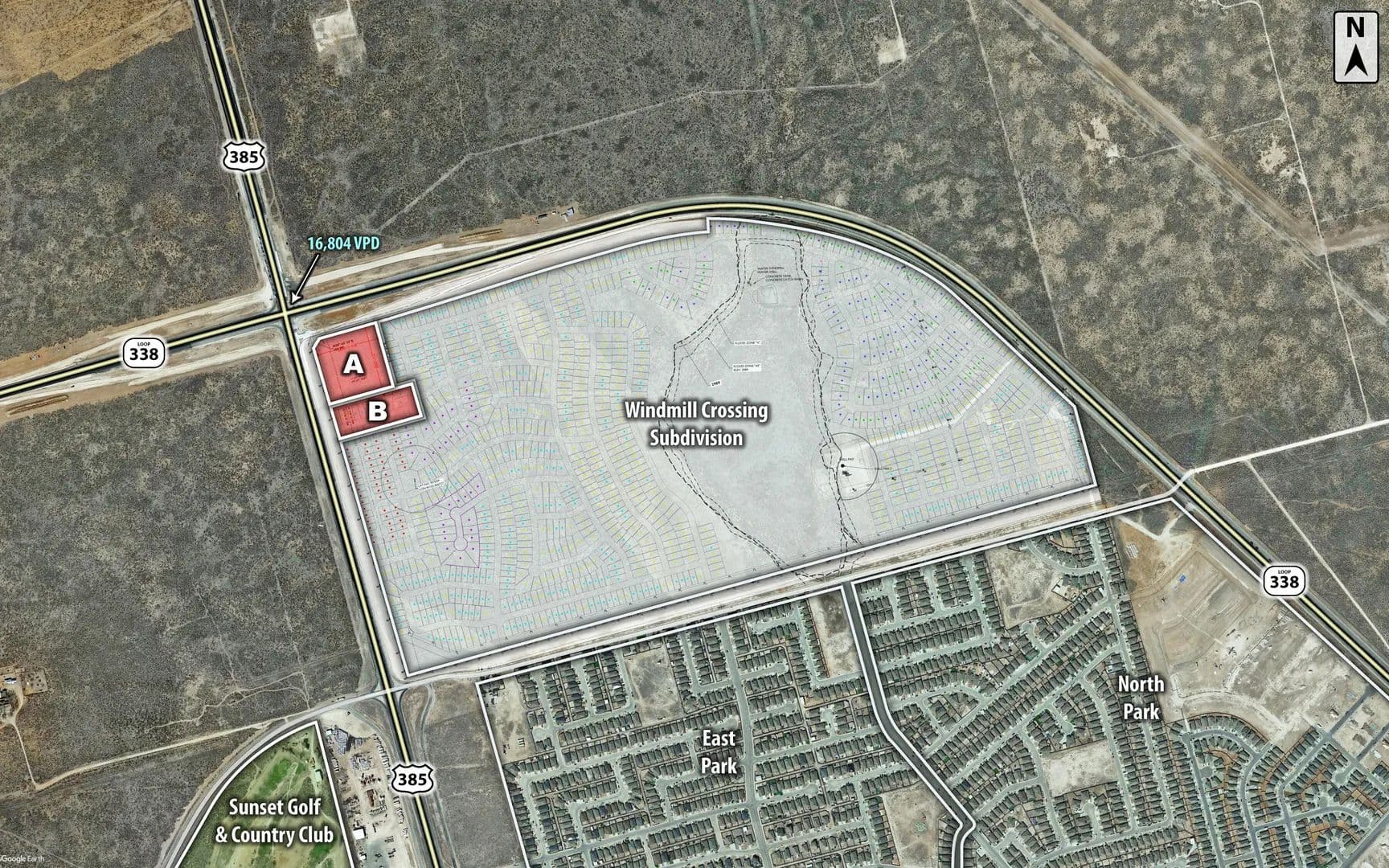 Large development tract in Betenbough’s latest residential subdivision, Windmill Crossing. Windmill Crossing offers quality and affordable new homes in Odessa ISD. This 621 acre and 1,922 homesite subdivision will bring themed community parks and gathering spaces, making Windmill Crossing one of the best neighborhoods for families looking for community in Odessa. Coldwell Banker Commercial is pleased to offer 6 acres for commercial development in Odessa’s newest subdivision. All utilities have been brought to site and commercial development is ready.
