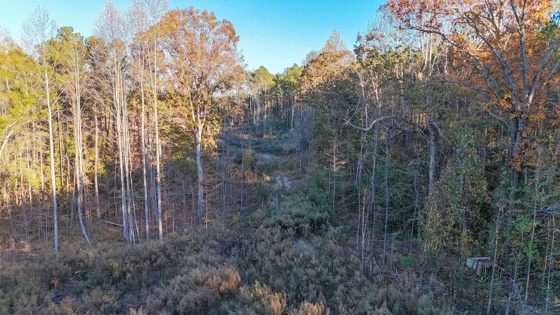 Here’s your opportunity to own a fantastic hunting property just a stone’s throw away from beautiful Lake Martin! A very low-traffic county road off Camp ASCCA Drive leads you back to a property that offers the kind of privacy and quiet that’s getting harder and harder to find. This tract has pretty much everything a hunter needs—from mast-producing hardwoods, to a spring-fed creek, to recently planted pines that are currently providing great bedding habitat and browse and will continue to do so for many years. The property also features two food plots that are planted and ready to be hunted this season, as well as a brand-new shooting house and a couple of ladder stands. The rolling topography is ideal for deer and turkey hunters, providing great vantage points and productive bottoms for strategic hunting.