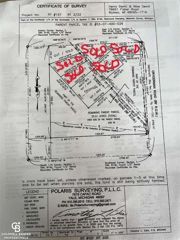 Unique opportunity! This 25.41-acre parcel offers approximately 714 feet of frontage on Angling Road and 1,355 feet on Cryderman Road. A great mix of open and wooded areas—perfect for a horse ranch or hobby farm. Grow your own hay, enjoy privacy, and still be just minutes from Richmond and Armada. Short term land contract terms may be considered. Well and septic will be needed for building. subject to crop rights