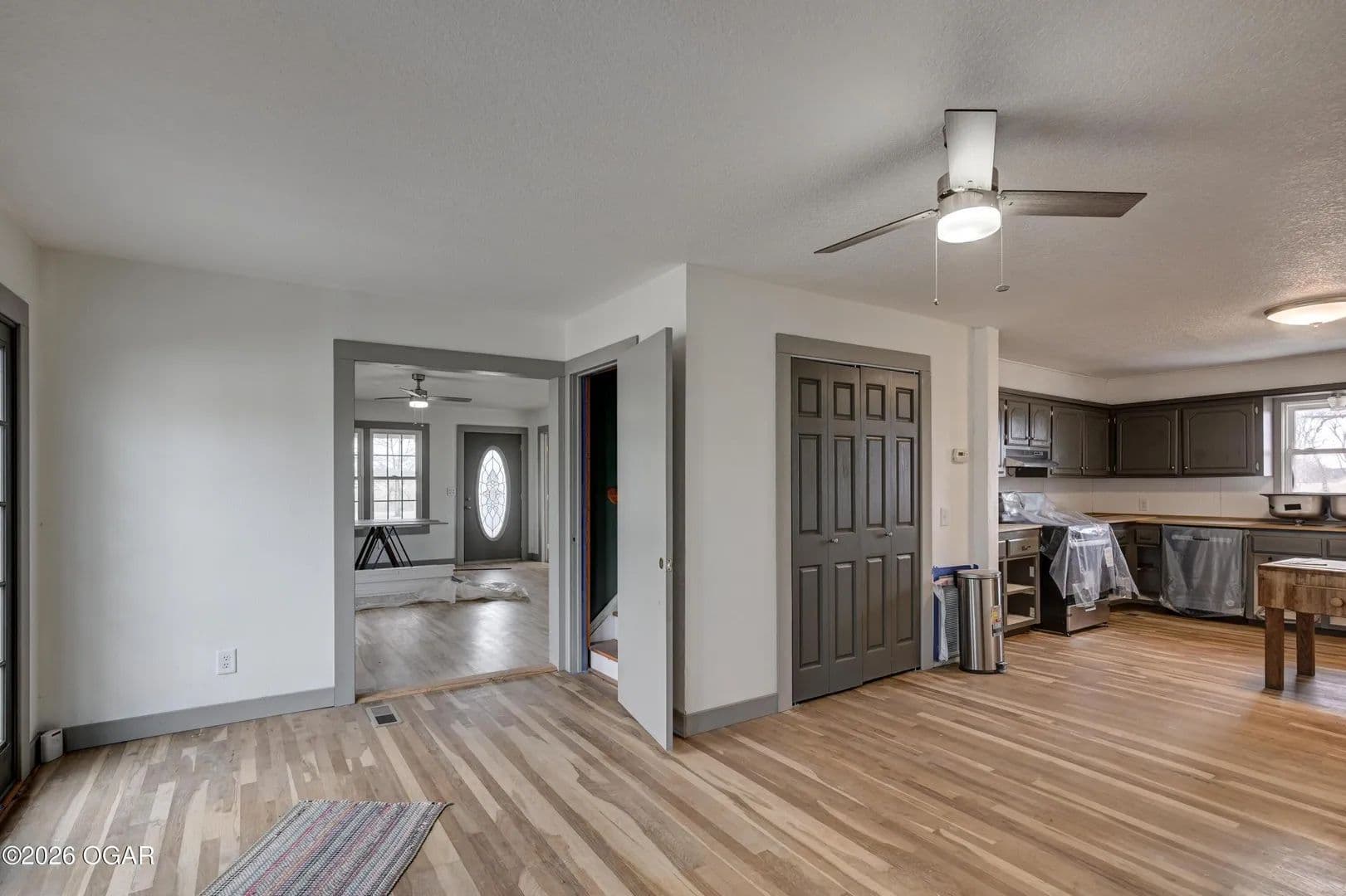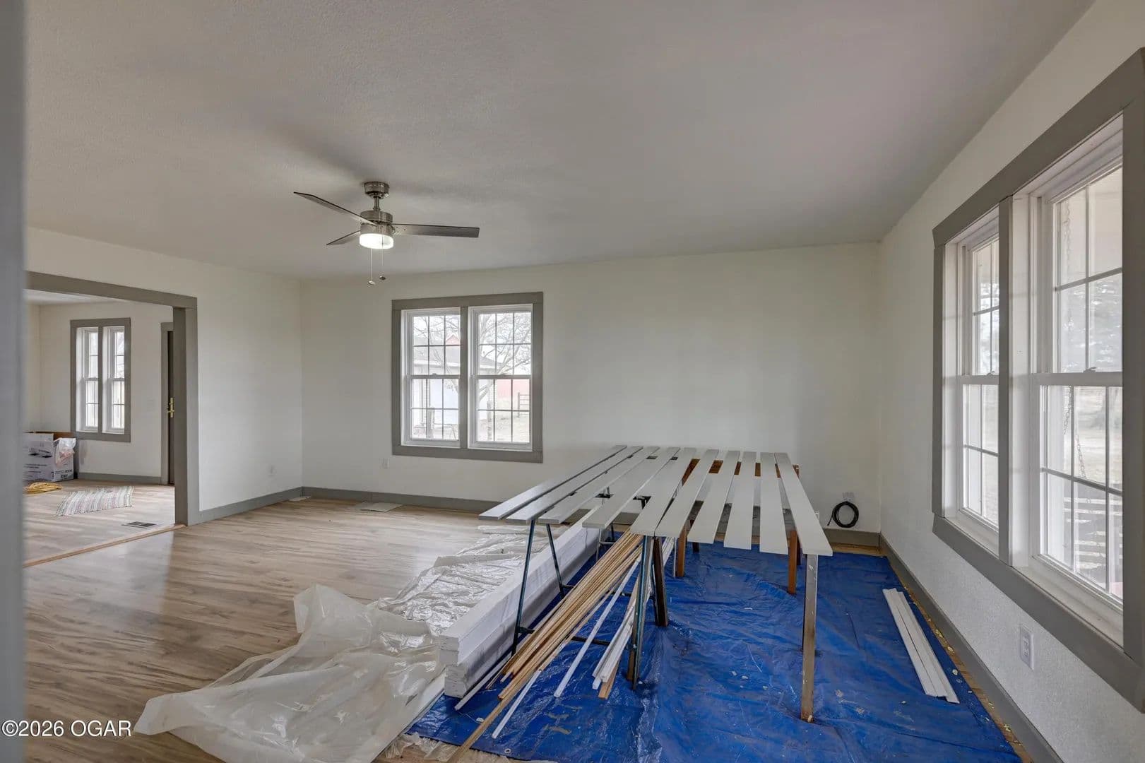 Experience country living at its finest with this almost fully remodeled 4 bedroom, 3 bath farmhouse on 30 beautiful fenced acres. This 2069 square foot home offers the perfect blend of modern comfort and classic farmhouse charm. Step inside to an inviting layout filled with natural light, updated finishes, and flexible space for family, guests, or a home office. The living, dining, and kitchen areas flow together, creating a warm and functional gathering space. Outside, you will appreciate the 3-car garage for vehicles, tools, and toys, along with a versatile barn ready for livestock, equipment, or hobbies. The partially fenced land provides open pasture, ideal for grazing, a farm pond ideal for livestock, farm, or recreational use