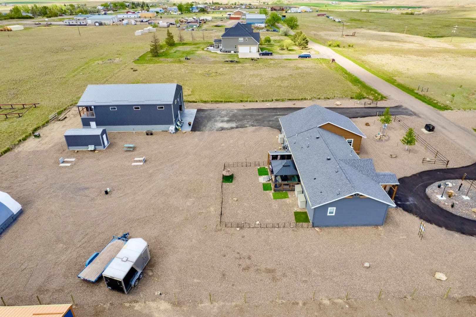 Built in 2023, this thoughtfully designed Montana property delivers a rare combination of modern efficiency, refined finishes, and exceptional utility. The 3-bedroom, 2-bath residence offers 1,680± square feet of comfortable, open living enhanced by radiant in-floor heat, central air, and quality craftsmanship throughout. A well-appointed kitchen anchors the home with granite countertops, stainless steel appliances, and generous workspace, flowing seamlessly into the living area warmed by a gas fireplace. Designed to extend living beyond the interior, the outdoor spaces invite both entertaining and relaxation with a covered deck, gazebo, and dedicated grilling area—set within a low-maintenance landscape that allows more time to enjoy the Montana lifestyle. An attached, heated three-car garage ensures convenience in every season. What sets this property apart is its infrastructure. A 42’ x 60’ heated shop, insulated to R-50 and equipped with a bathroom, shower, mezzanine loft, and viewing deck overlooking the Bears Paw Mountains, provides unmatched flexibility for business use, recreation, or additional living potential. Supplementary storage buildings and a dedicated cistern structure further enhance the property’s functionality. Positioned in Havre, the commercial and cultural heart of Montana’s Hi-Line, this property offers year-round recreation within easy reach—hunting, fishing, skiing, and exploration in the Bears Paw Mountains, Milk River, and surrounding countryside. Purpose-built, low-maintenance, and ready to perform, this is modern Montana living done right.