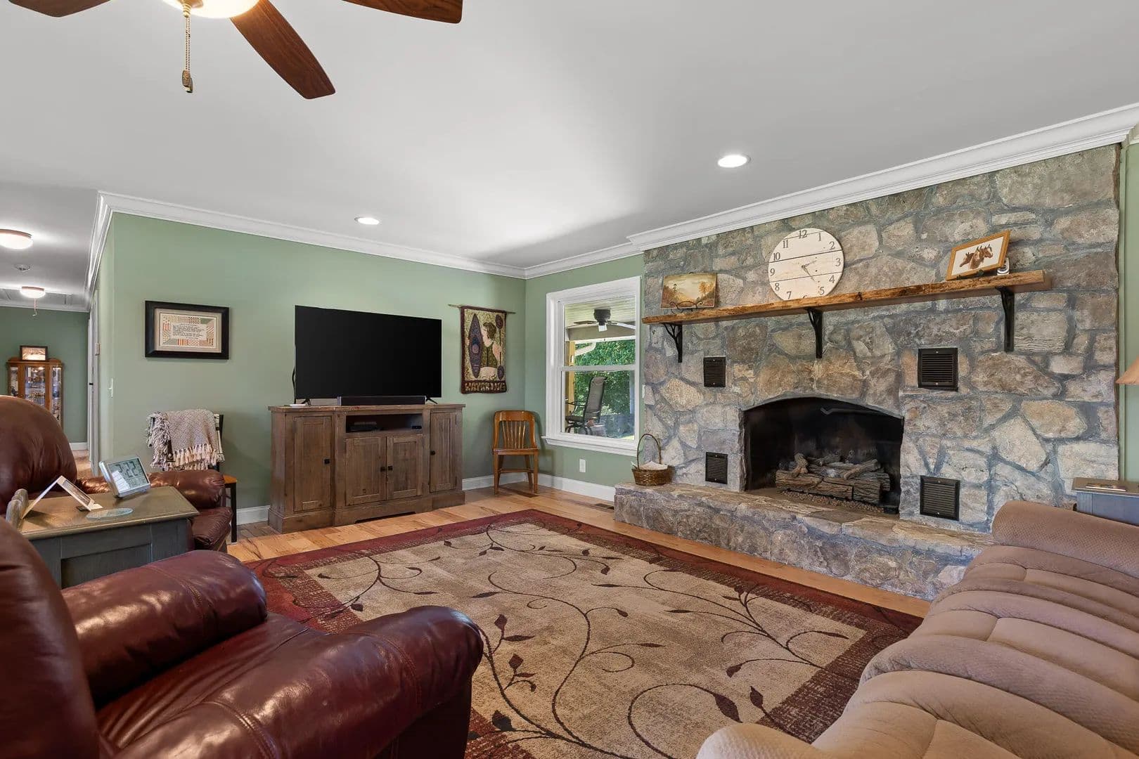 Welcome to your dream retreat—39 breathtaking rolling acres offering a perfect blend of open space and natural beauty. With 14 acres cleared and 6-7 acres fully fenced, this property is ideal for equestrian enthusiasts, hobby farmers, or those seeking tranquility with room to roam. The centerpiece is a large, well-equipped barn featuring two horse stalls, a spacious tack room, water, electricity, and a convenient wash bay. Adjacent is a covered carport designed for an RV or horse trailer, complete with its own septic system and electric hookup for RV use. Enjoy serene afternoons by your stocked pond, ride in the designated arena, or explore the property's dramatic natural boulders and sweeping pastureland. The panoramic mountain views offer a stunning backdrop in every season. The main home was completely gutted and renovated in 2014, including a brand-new kitchen, sunroom, updated wiring and plumbing, crawl space encapsulation, and energy-efficient windows. The roof was just replaced in 2024—ready for years of worry-free living. Also on the property is a detached office or guest house with a kitchenette and private bathroom—perfect for visitors, remote work, or potential rental income. Low county taxes with the acreage being in the Dade County Conservation status (can be transferred to new buyers)