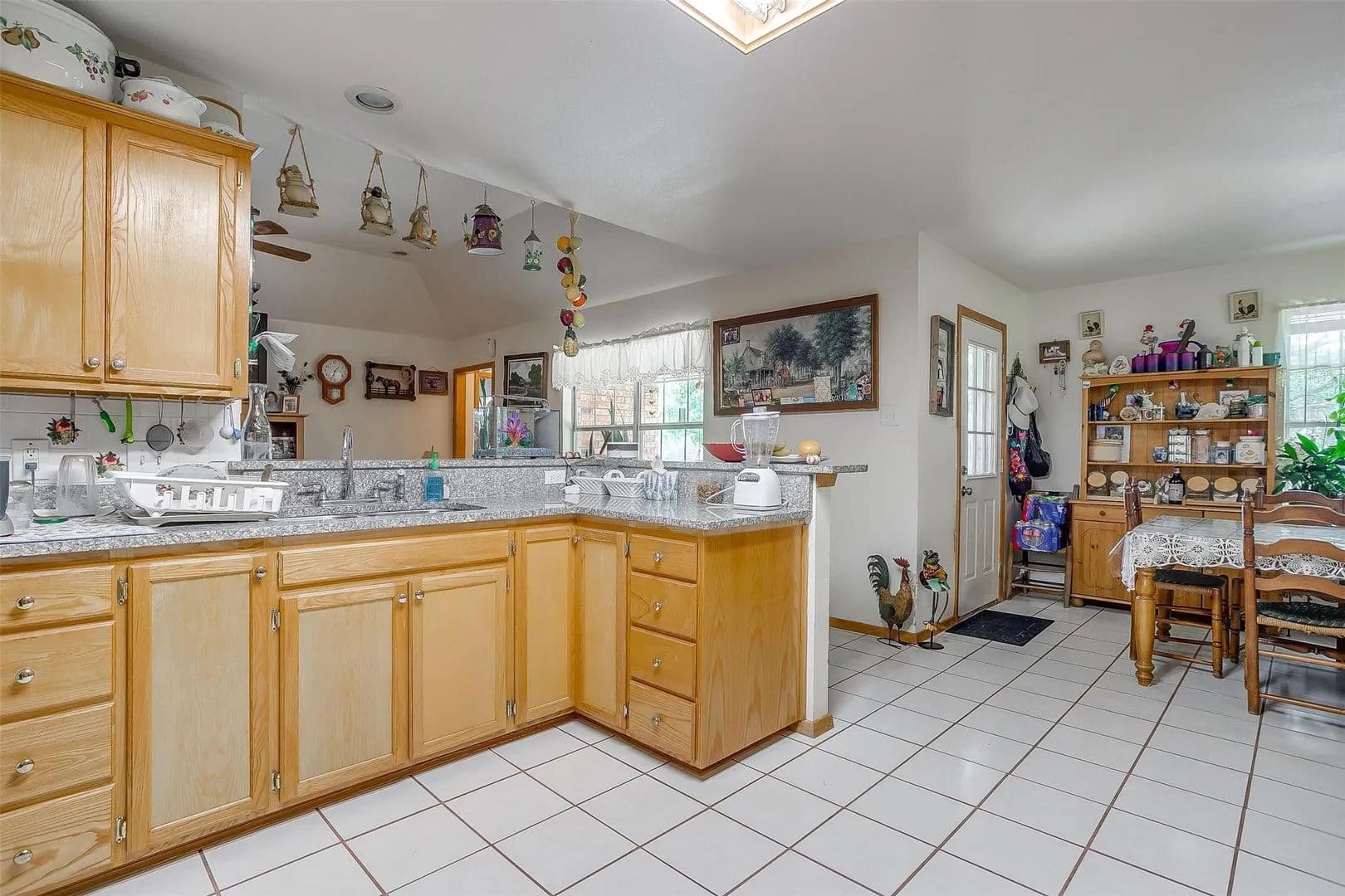 Are you searching for land adorned with beautiful oak trees? Look no further than this 100+ acre property, which features a well-maintained brick home! The house includes a primary bedroom with an ensuite bathroom, along with two additional bedrooms that share a bathroom. The kitchen boasts lovely granite countertops and is open to the living and dining areas. Conveniently located off the kitchen are a utility room and a half bath.