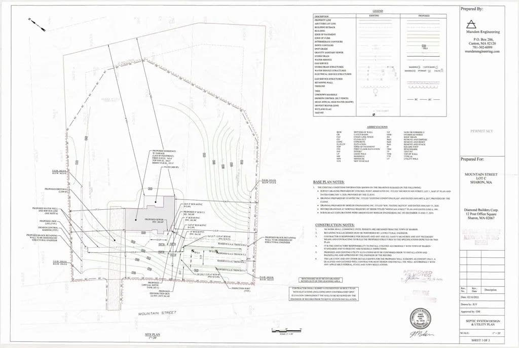 NEW CONSTRUCTION OPPORTUNITY! INCREDIBLE CHANCE FOR THE BUYER or DEVELOPER who is looking to build on a lot that already has much of the site work, engineering and septic plan completed and also comes with a FULL SET OF HOUSE PLANS INCLUDED in the price. BRING YOUR PLANS OR USE OURS. 5 BEDROOM SEPTIC. This is an opportunity to SEIZE the MOMENT and purchase this beautiful 2.12 acre lot in East Sharon and BUILD YOUR DREAM HOME. Scenic and quiet country road across from Borderland State Park, backing up to Conservation Land and adjacent to Conservation Land. Lots of wildlife and trails. BEST OF BOTH WORLDS - 1/2 hour from Boston and Providence, Sharon is well known for its Highly Ranked Schools and is 1/2 way between Boston and Providence! BRING YOUR PLANS OR USE OURS. The lot also includes on site clean gravel and fill. Flexible placement for home on lot. AN AMAZING OPPORTUNITY! !