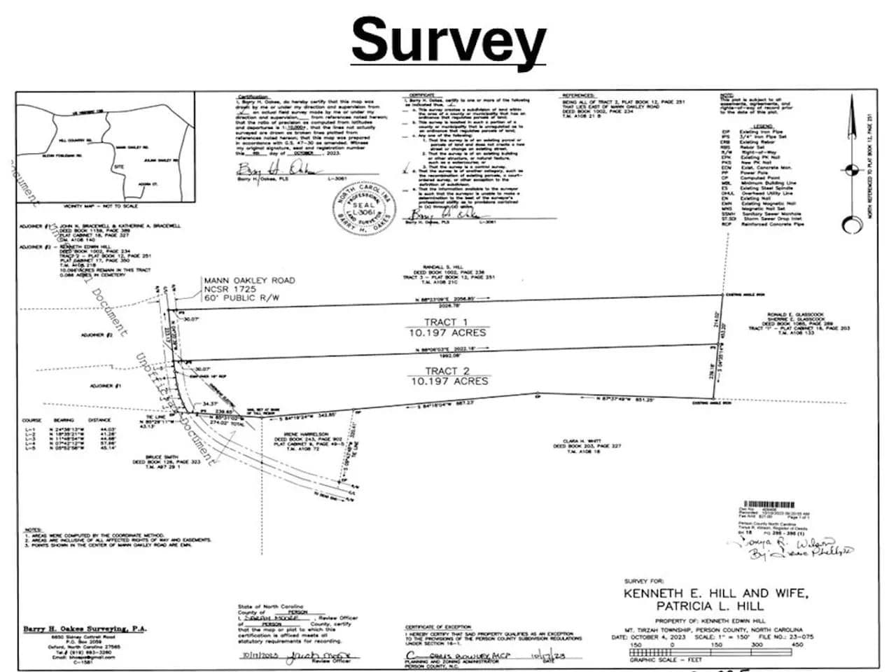 Located in the southeastern part of Person County in Rougemont, NC these two secluded 10.197 acre parcels offer the potential for residential and recreational enjoyment for many years to come. With no deed restrictions, the two tracts combined have approximately 456 feet of road frontage along Mann Oakley Road. Extensive trail network also provides ease of access throughout the entire property that would allow for ATV rides, nature hikes, and many more recreational opportunities to be enjoyed by friends and family. Previous soil evaluations show viable soils near the road frontage on both tracts for at least a three bedroom perc site. After consulting with a soil scientist, other areas on tract 1 may have viable soil testing areas that could be explored by the buyer.